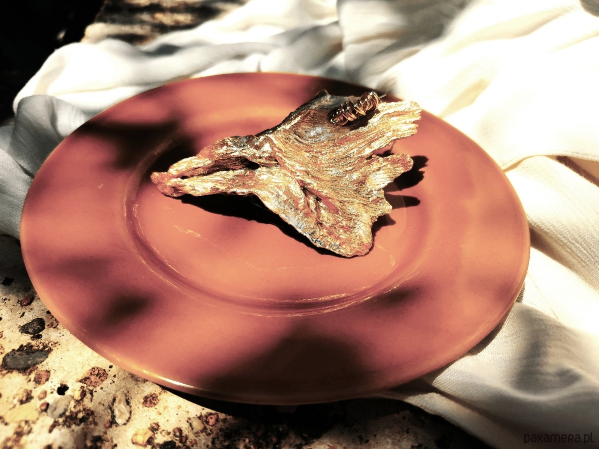 Dzięki użyciu kilku warstw ekologicznego lakieru jest trwały. Złota i srebra farba dodają mu blasku.