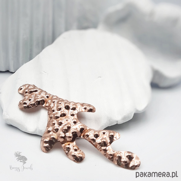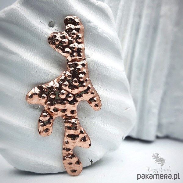 Za pomocą młotka i puncyn o okrągłym kształcie wybijałam wypustki na powierzchni miedzi. Każda wypustka powstała od kilkukrotnego uderzenia młotkiem.