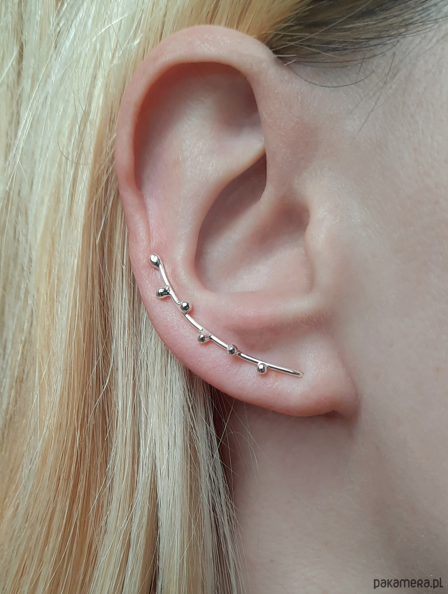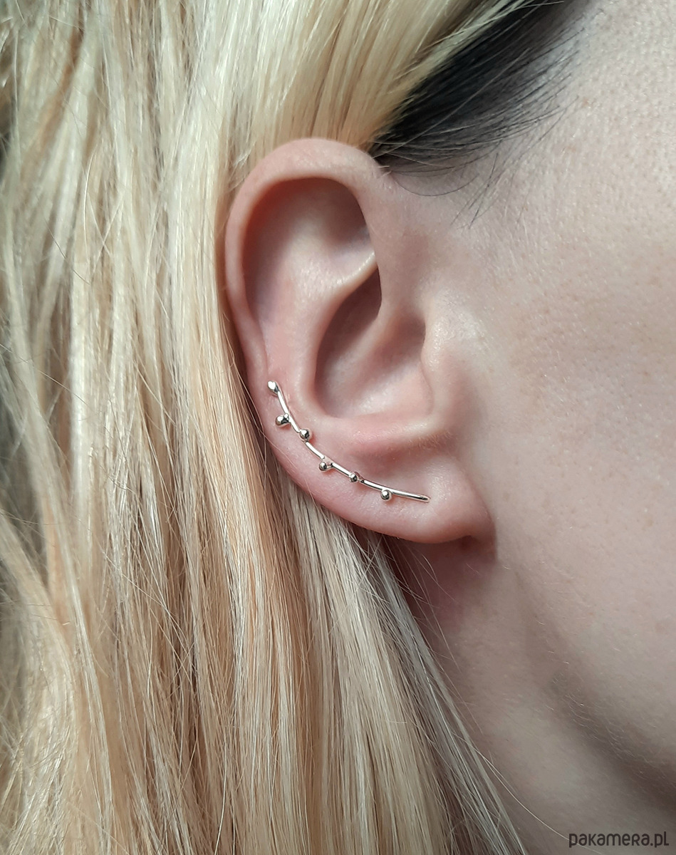 Proces zakładania jest taki sam, jak przy tradycyjnym kolczyku. Należy go potem ułożyć na płatku ucha, by piął się do góry. Wygląda obłędnie!