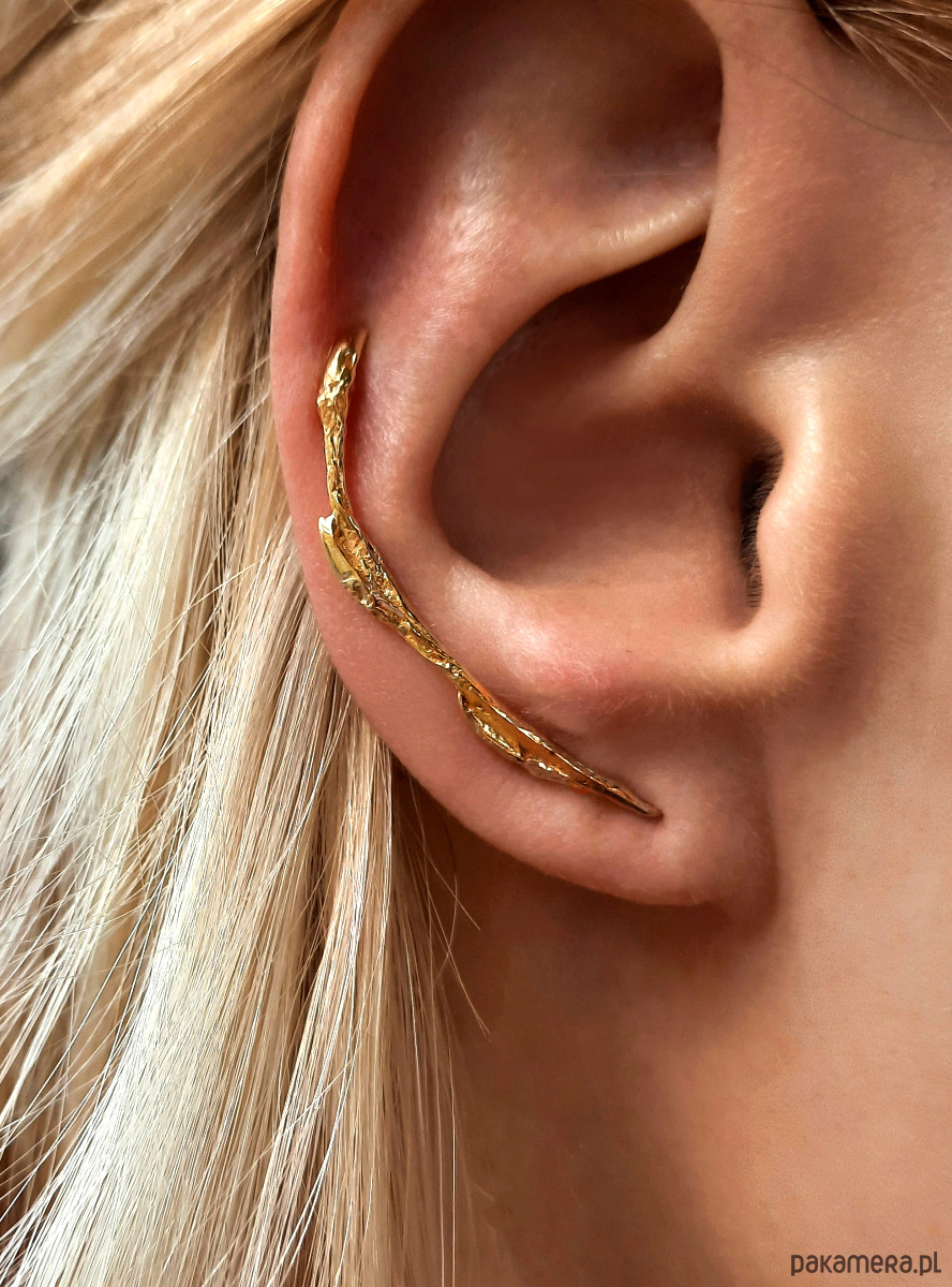 Kolczyk- nausznica GAŁĄZKA gold -srebro pozłacane, prawe ucho nausznice