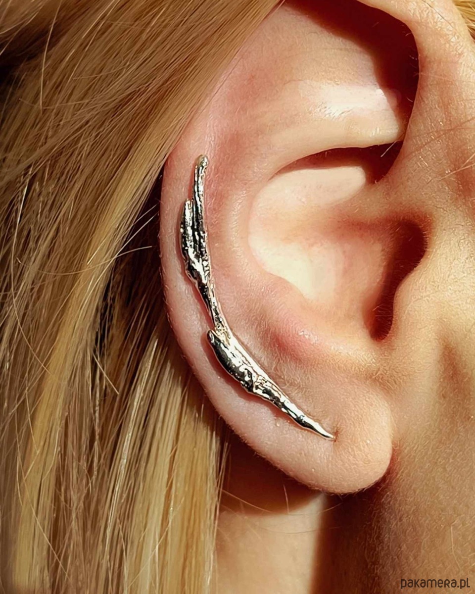 Za każdym razem, gdy zamawiasz ten model, siadam przy moim jubilerskim stole i zaczynam pracę nad nausznicą specjalnie dla Ciebie. To nie jest biżuteria masowo odlewana. Dokładam wszelkich starań, by była ona jak najbardziej zbliżona do tej, przedstawionej na zdjęciu. Dlatego nie zdziw się, proszę, jeśli zauważysz delikatne różnice- pamiętaj, że to czyni nausznicę absolutnie wyjątkową.