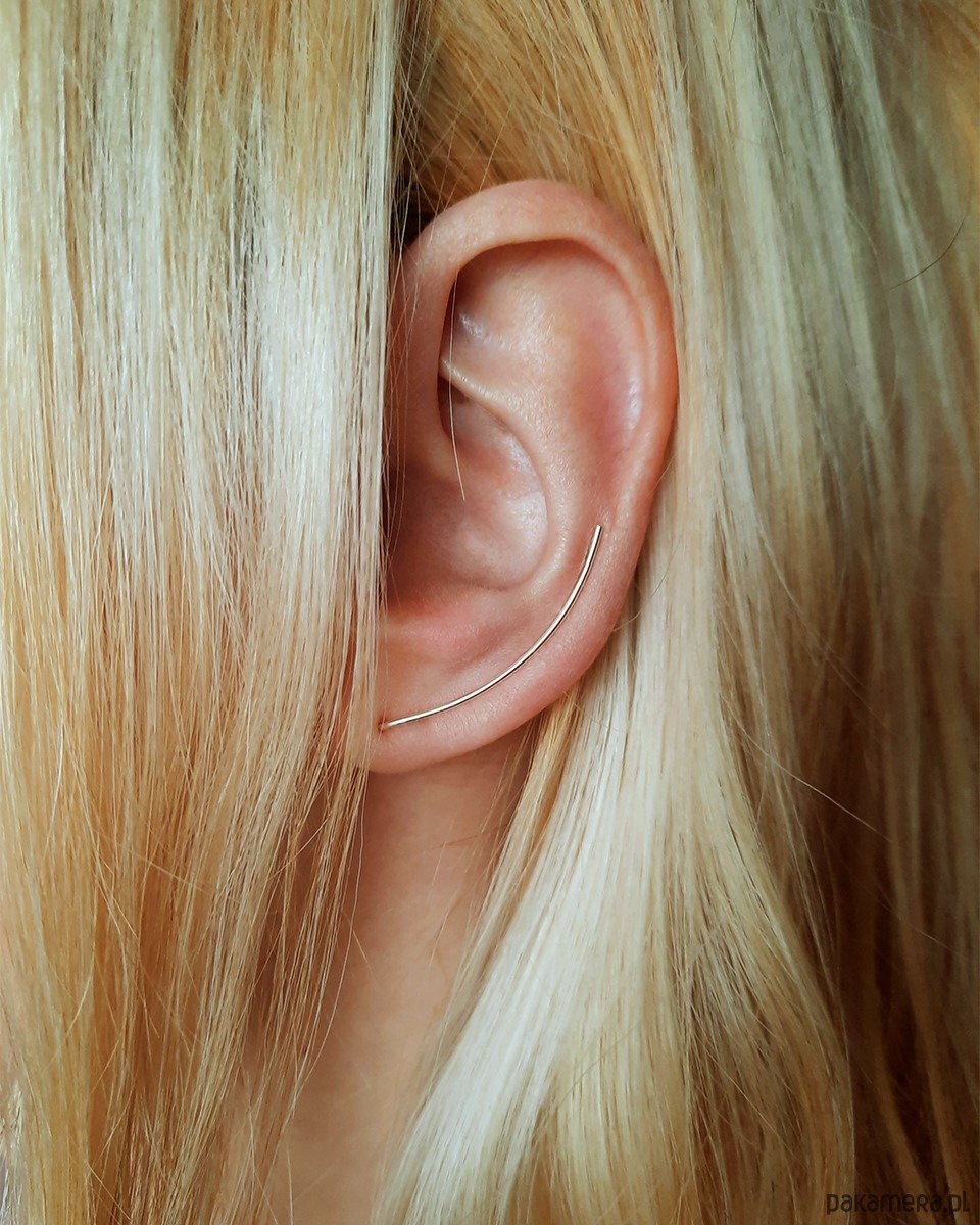 Proces zakładania jest taki sam, jak przy tradycyjnym kolczyku. Należy go potem ułożyć na płatku ucha, by piął się do góry. Wygląda obłędnie!