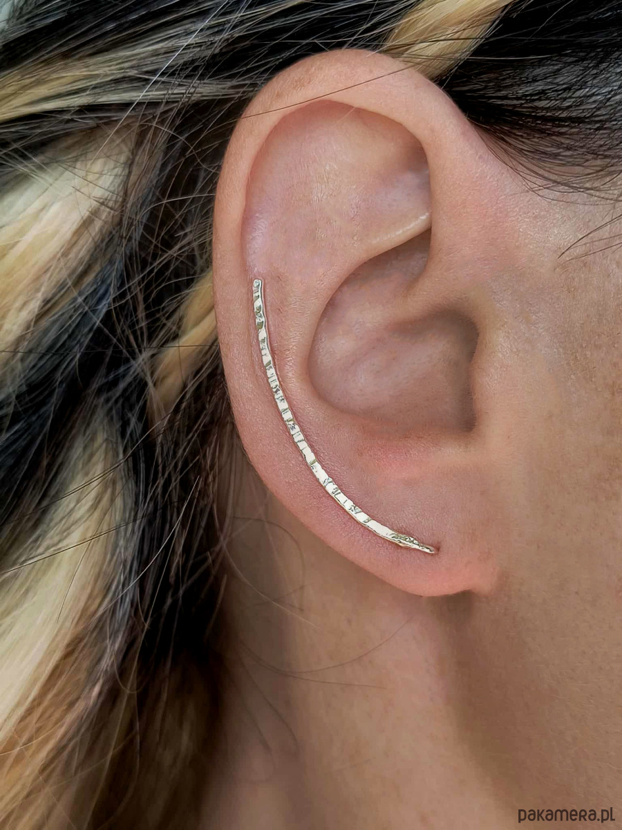 Proces zakładania jest taki sam, jak przy tradycyjnym kolczyku. Należy go potem ułożyć na płatku ucha, by piął się do góry. Wygląda obłędnie!