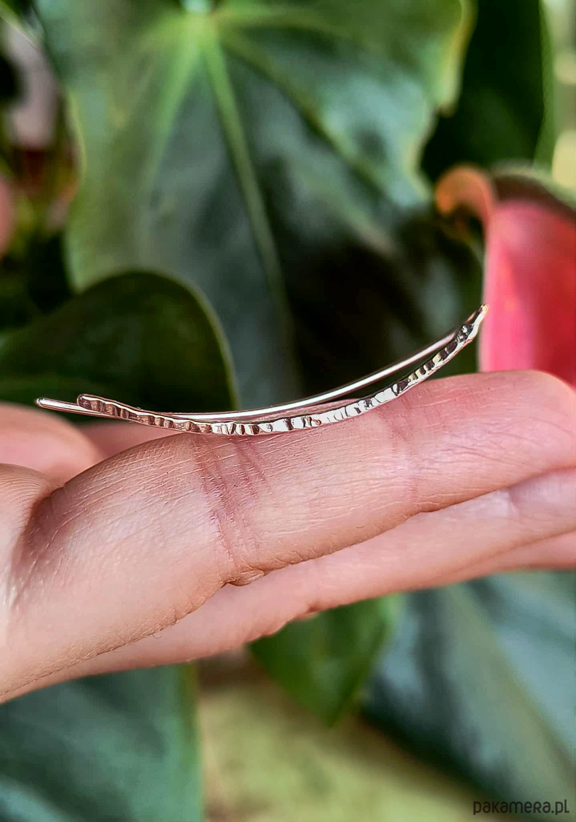 Kolczyk - nausznica Młotkowana z jasnego srebra