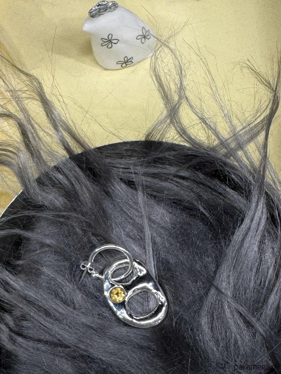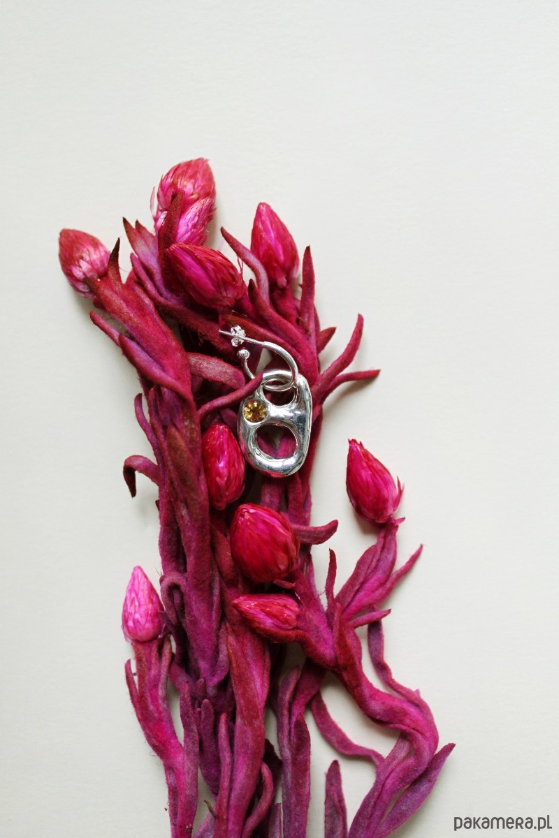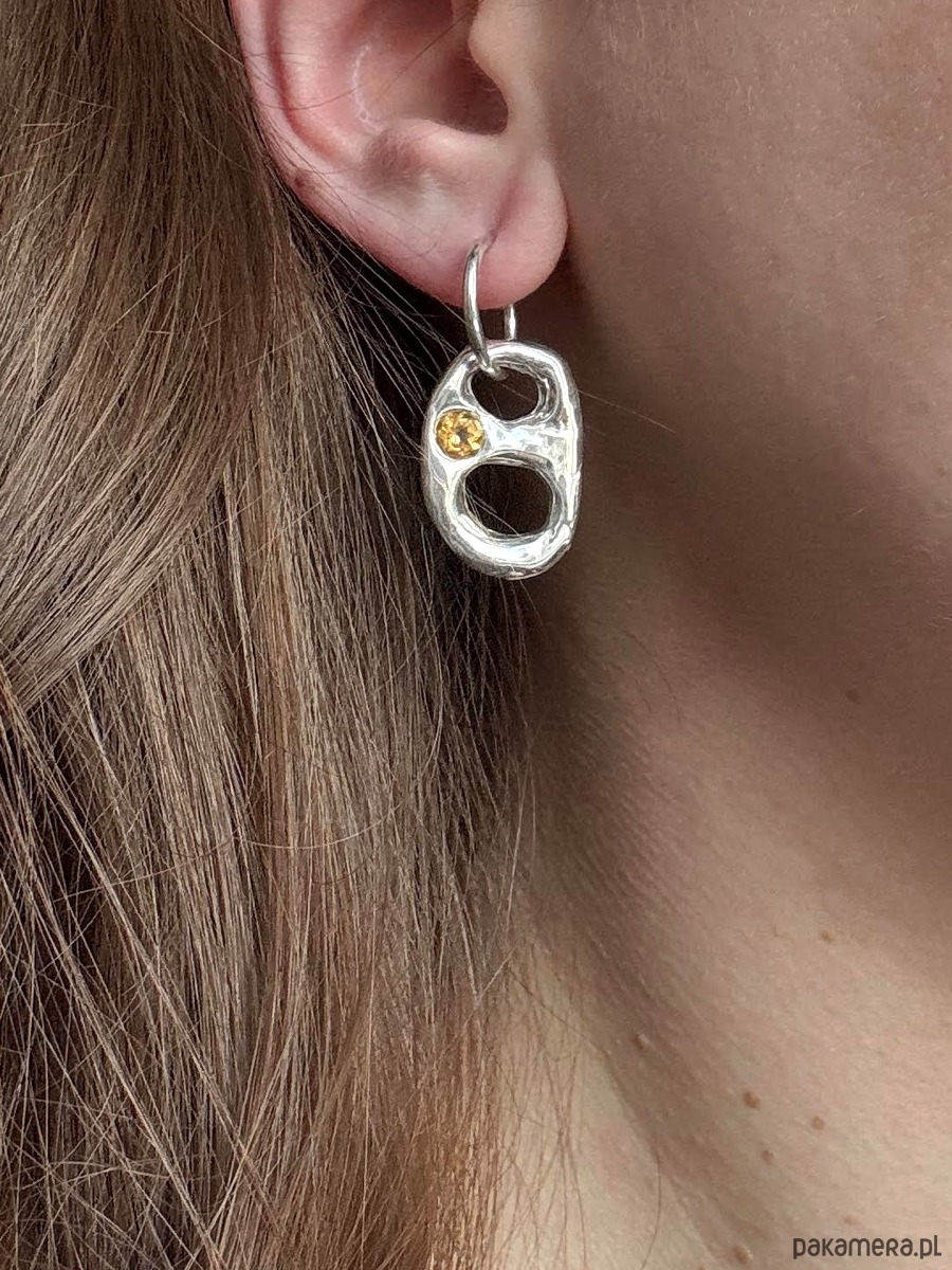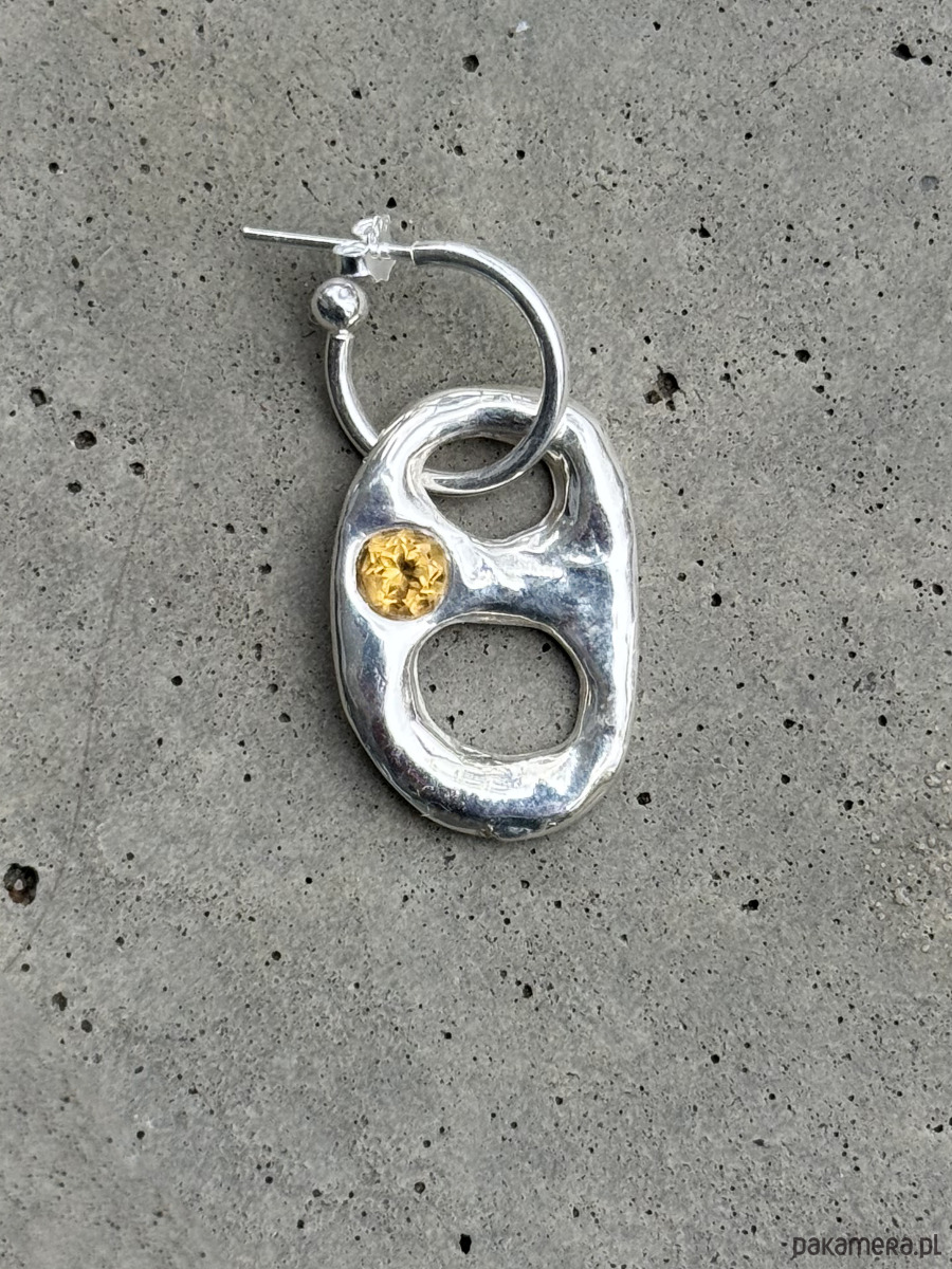 Pojedyńczy kolczyk Zawleczka wykonany ze srebra 925 i ozdobiony kamieniem szlachetnym - cytrynem.