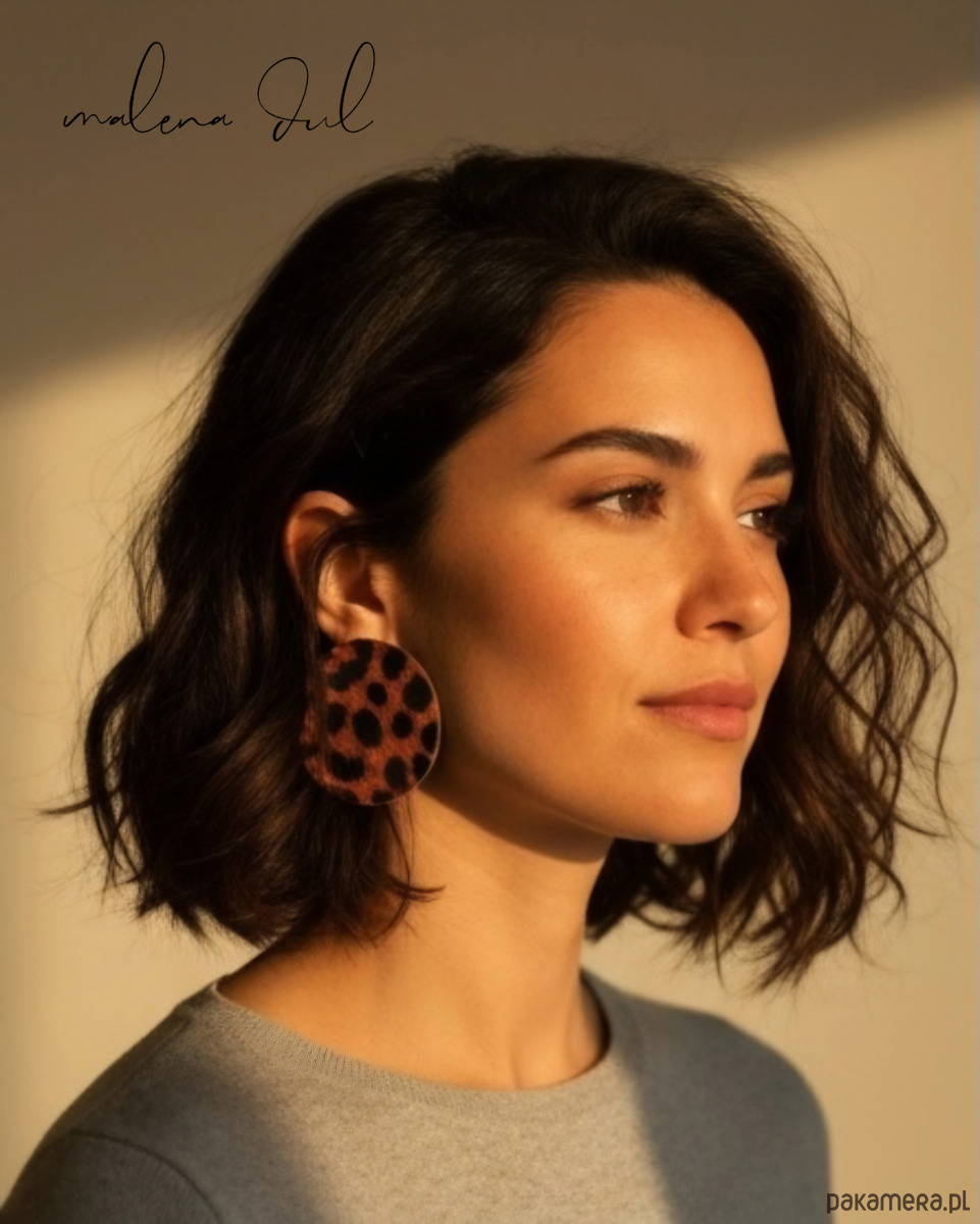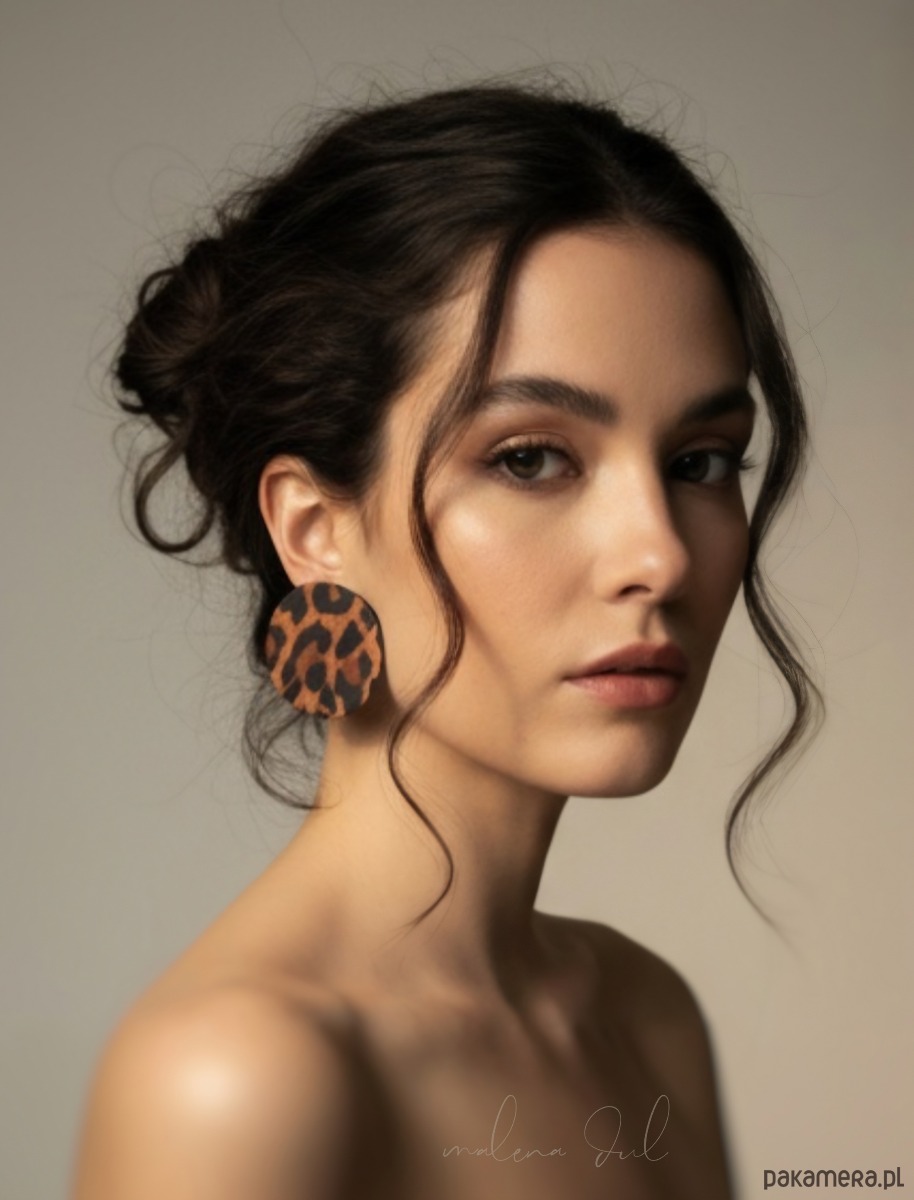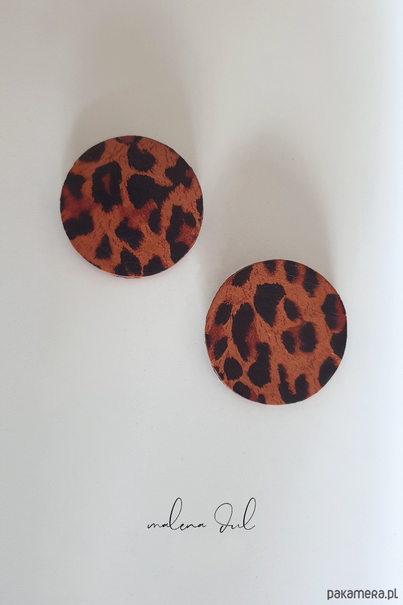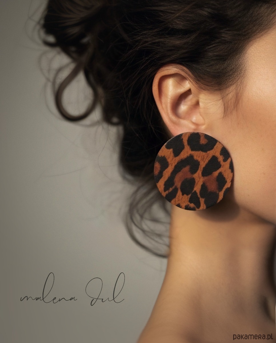 Kolczyk SUN duży koło skóra naturalna panterka brązowa brązowe