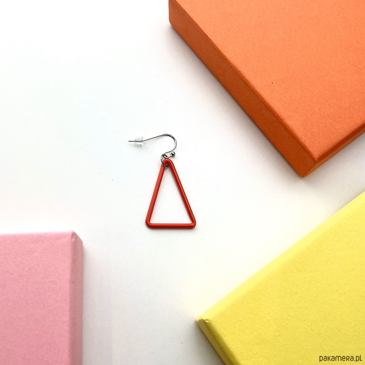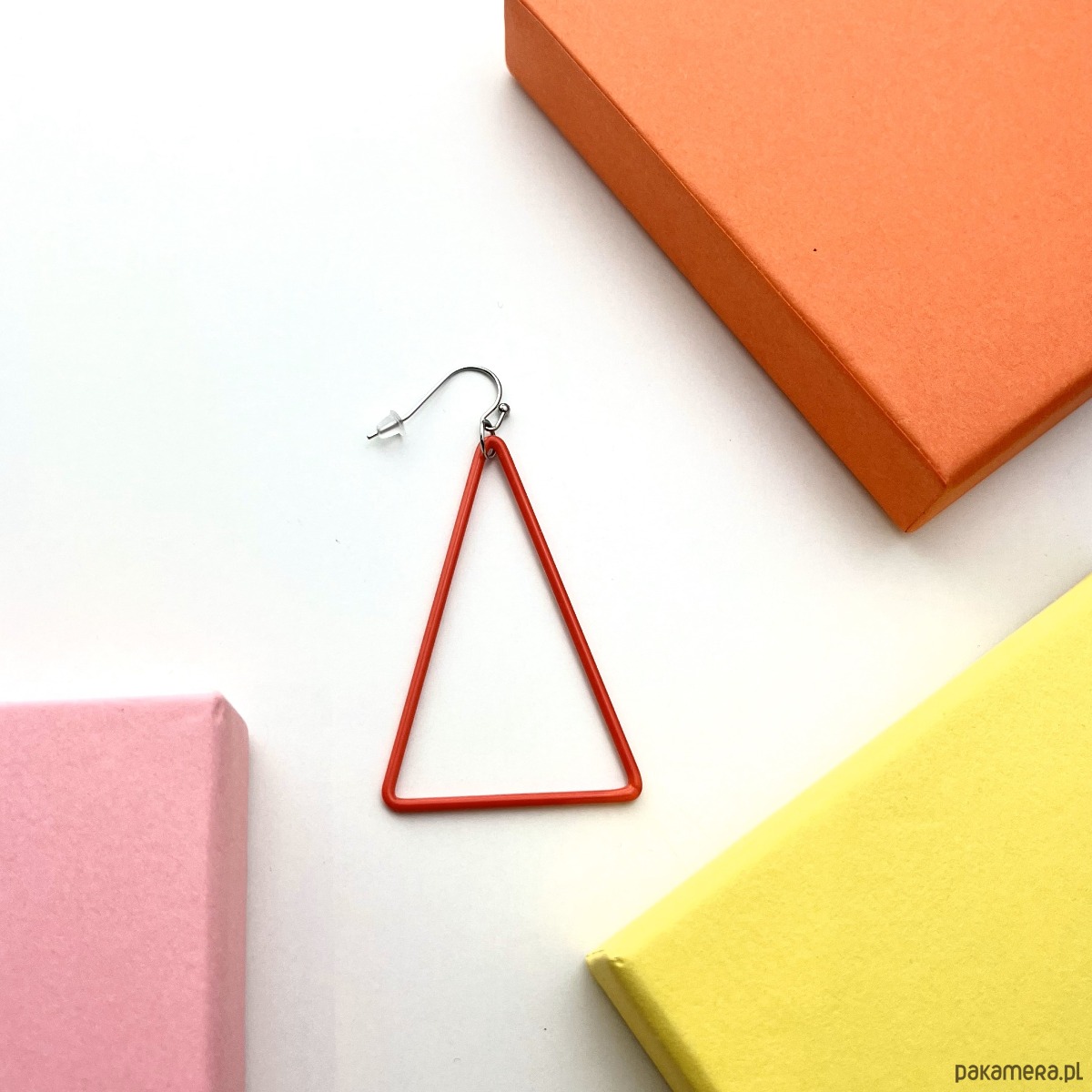 Kolczyk TRI - czerwony trójkąt ze szkła