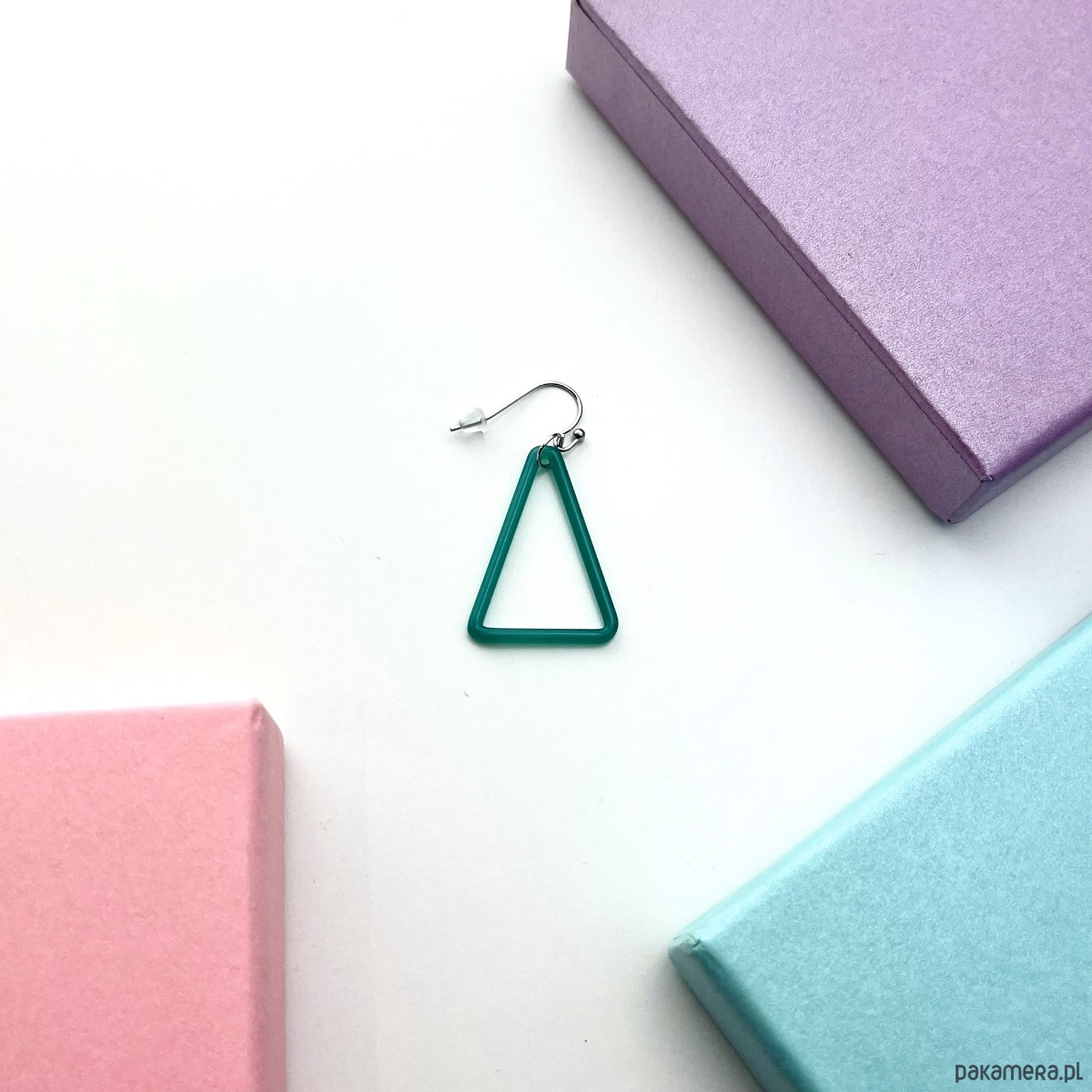 Kolczyk TRI - turkusowo zielony trójkąt ze szkła