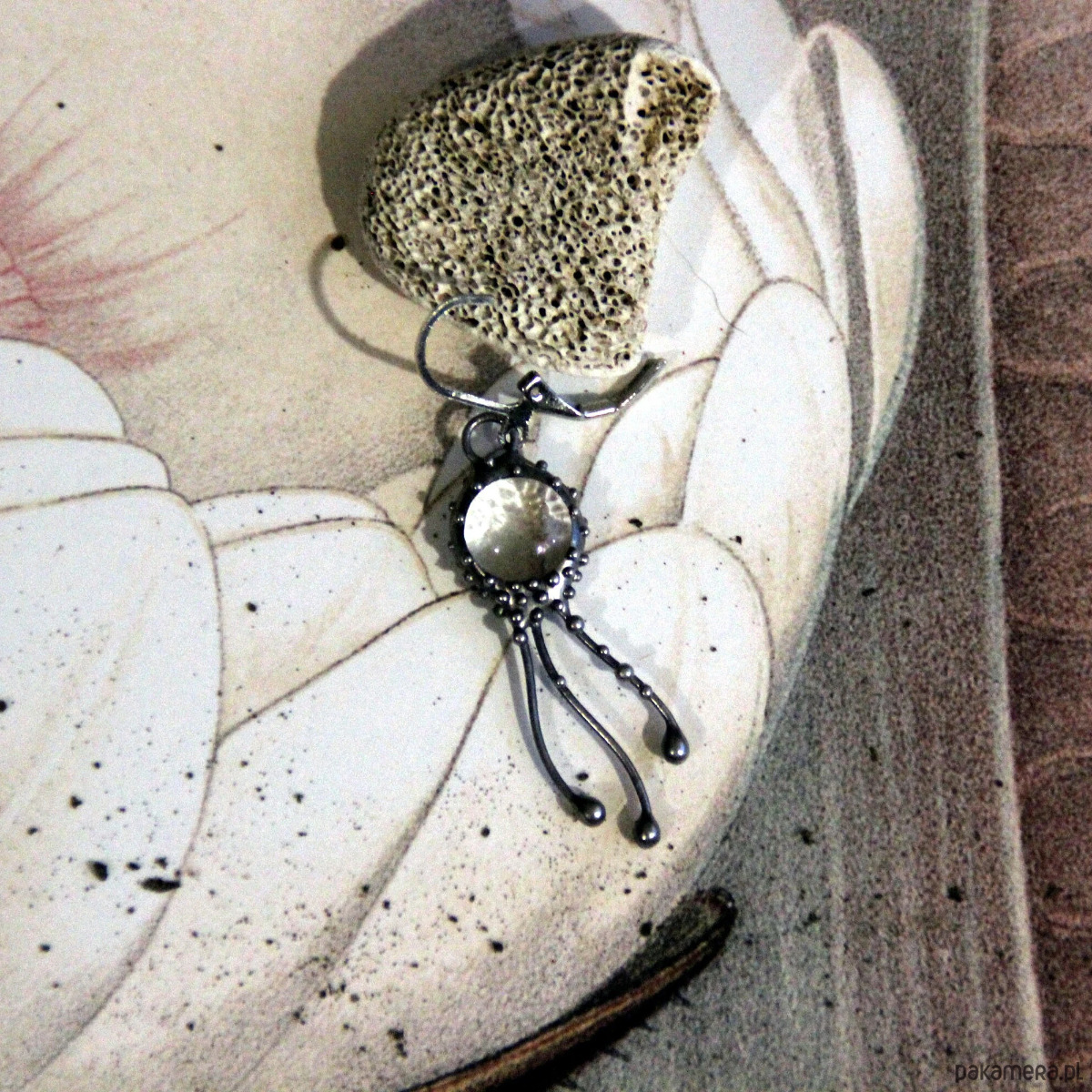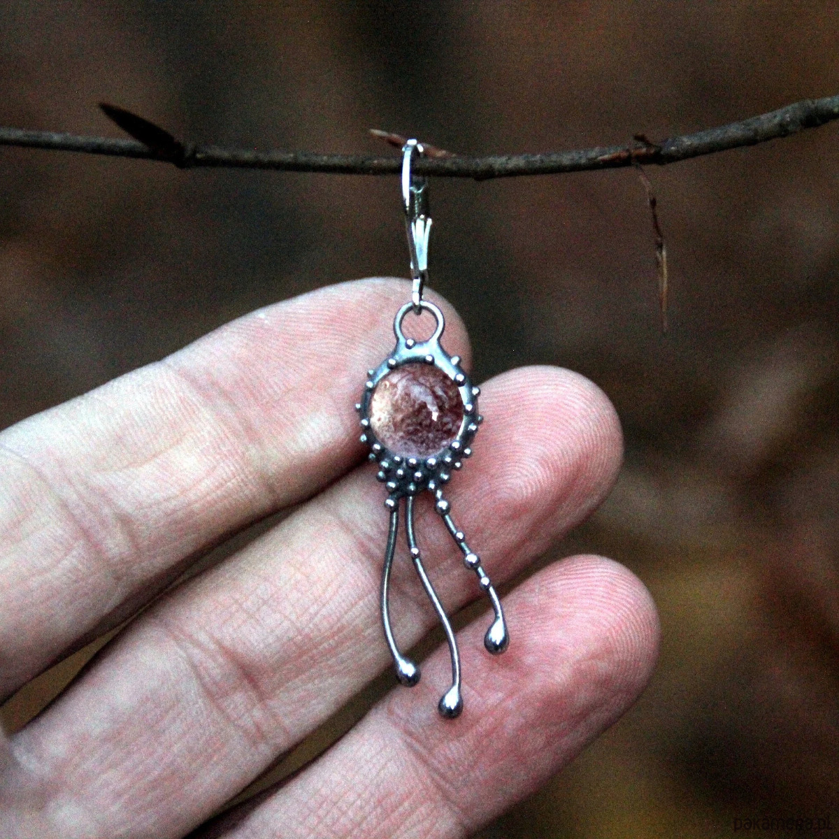 Kolczyk z motywem meduzy wykonany techniką witrażową, niezwykły prezent