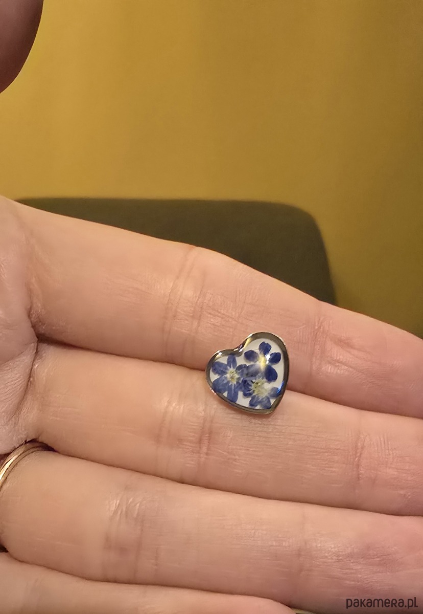 Kolczyk z kwiatami niezapominajki na zamówienie indywidualne w kolorze srebrnym.