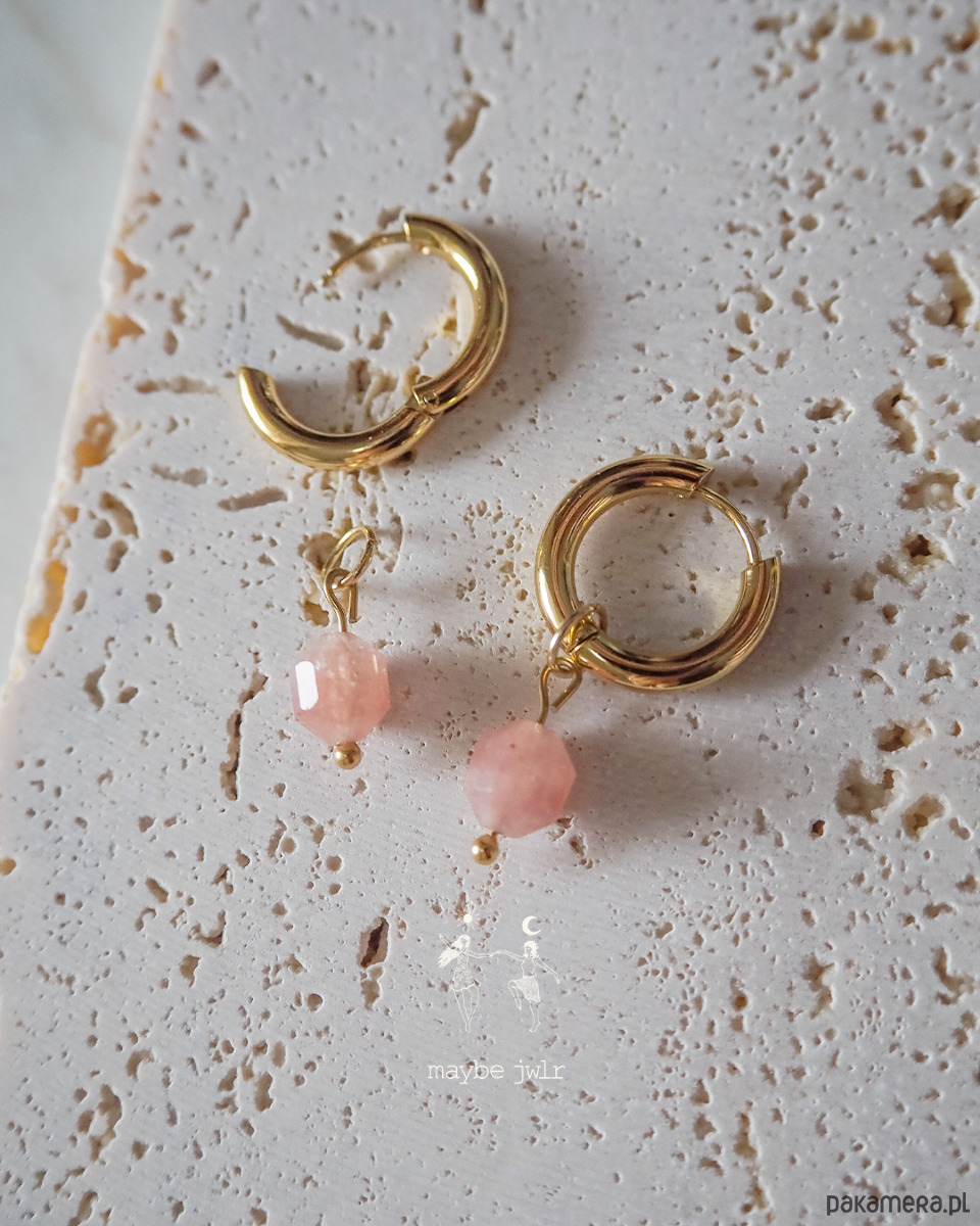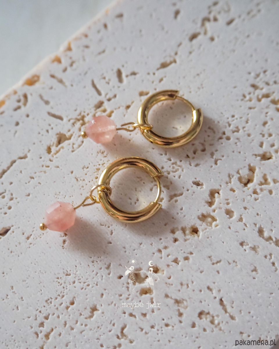 Naturalne kamienie – kwarc truskawkowy - kamień miłości i szczęścia, wzmacnianie pozytywnej energii, budowanie głębszych więzi oraz uzdrawianie emocjonalne.