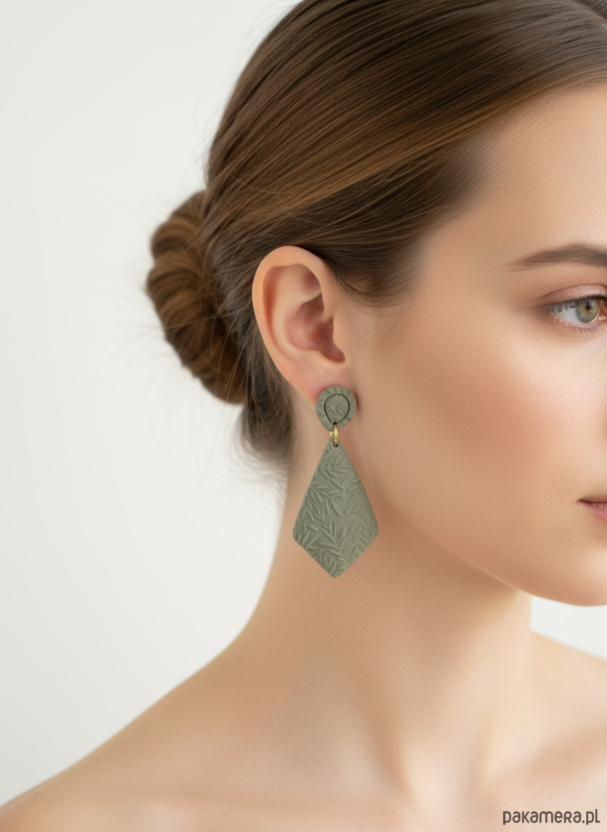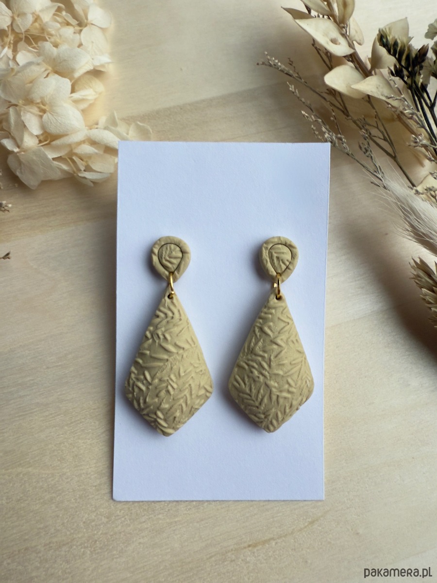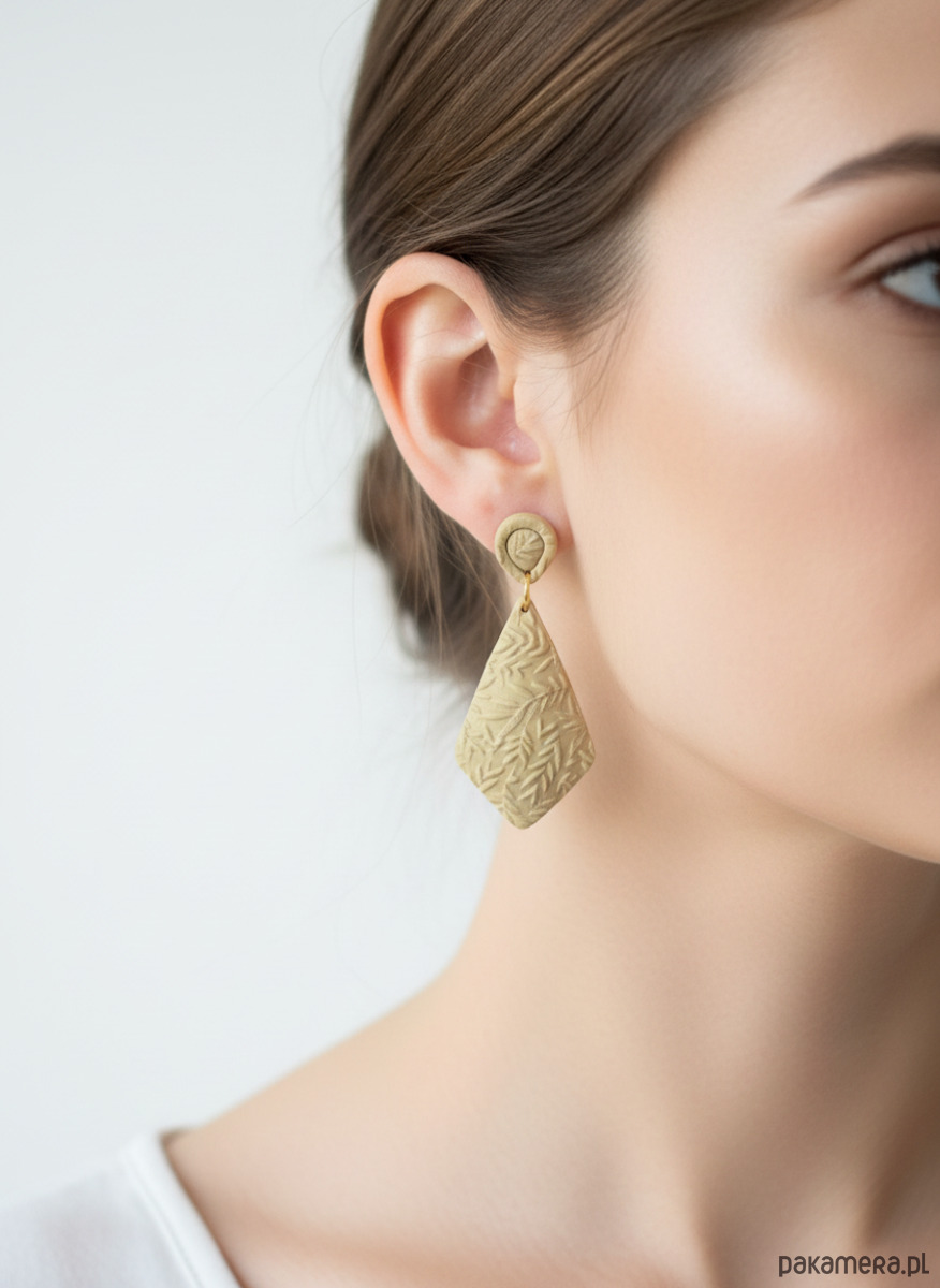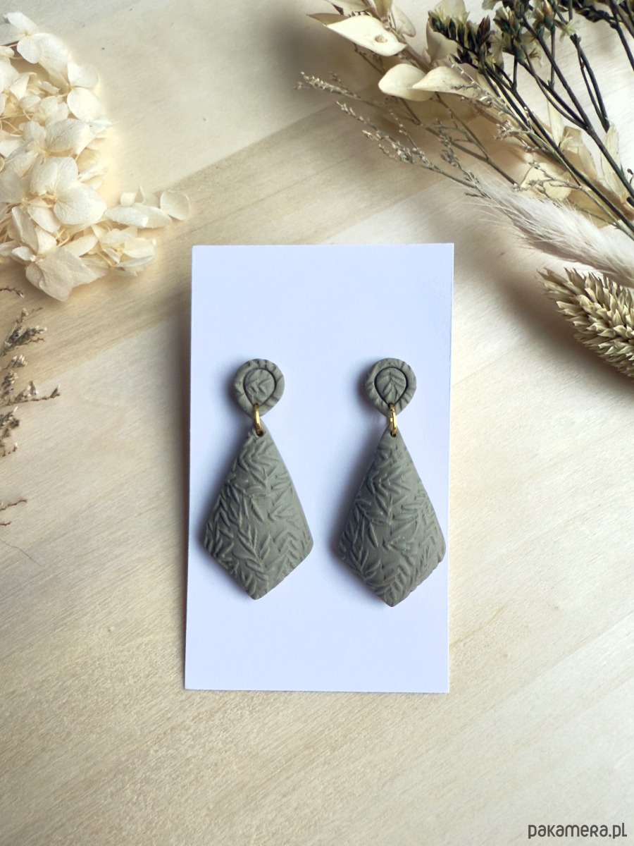 Wypukłe, ręcznie rzeźbione kolczyki o roślinnym wzorze. Każdy egzemplarz wykonano z lekkiej gliny polimerowej, dzięki czemu biżuteria jest niezwykle wygodna w noszeniu – nie obciąża ucha, a efekt 3D pięknie prezentuje się na uchu.