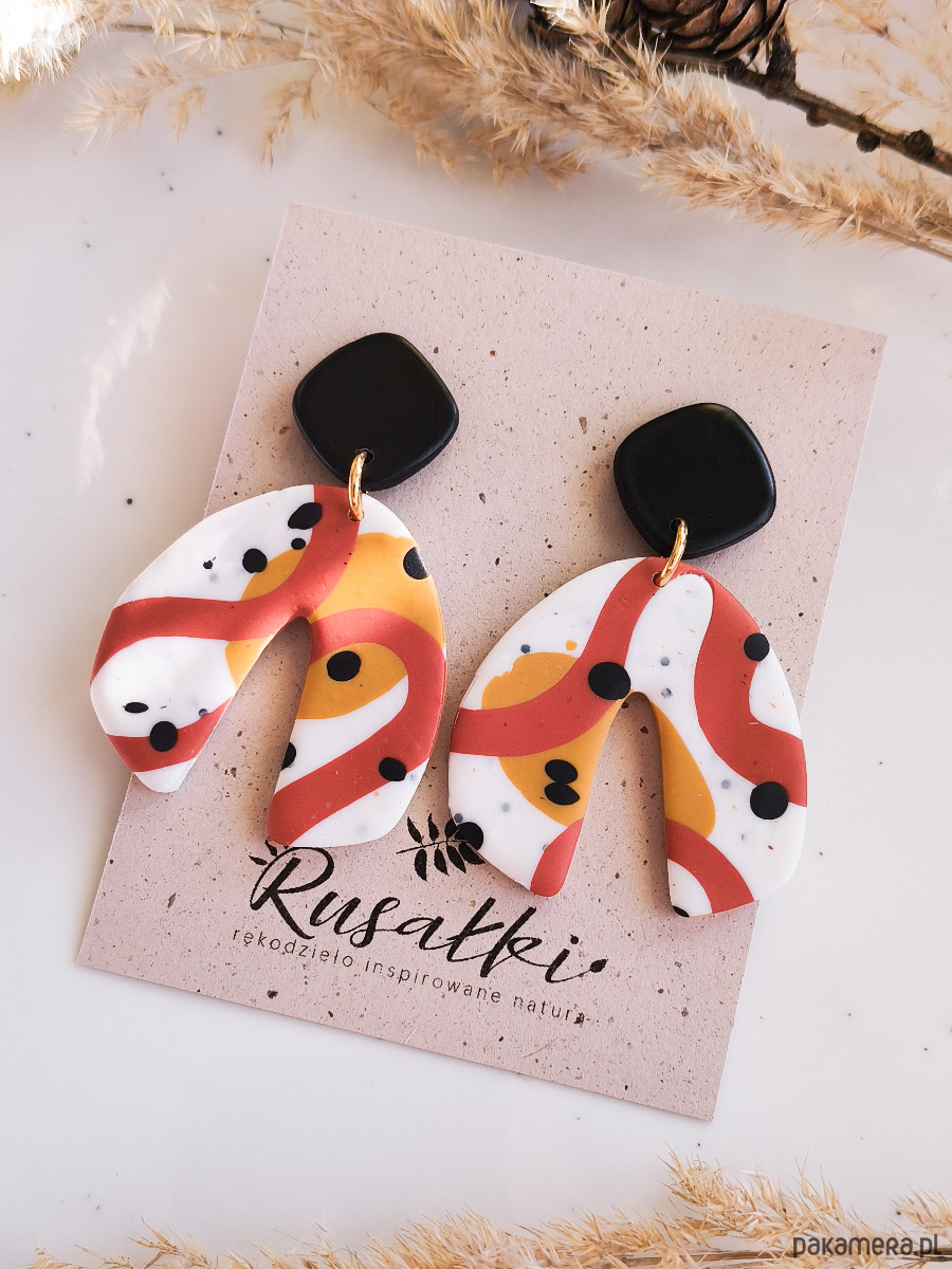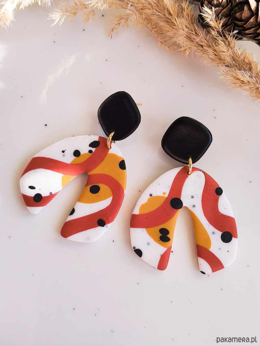 Kolczyki abstrakcje brązowe, wzorzyste duże kolczyki, prezent z okazji