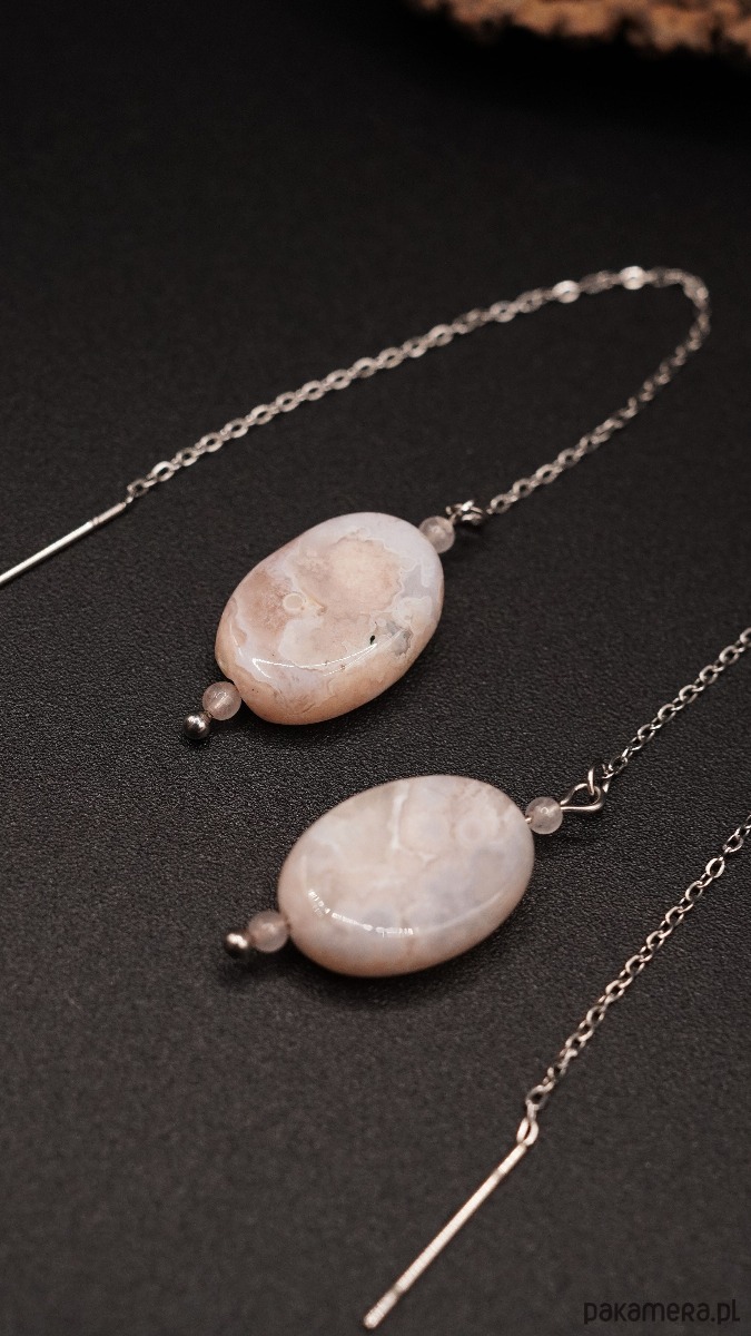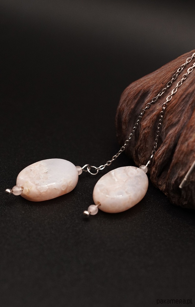 Subtelne i pełne wdzięku kolczyki, które łączą w sobie naturalną magię Agatu Sakura oraz delikatność kwarcu różowego. To biżuteria stworzona dla kobiet, które kochają pastelowe barwy i dodatki inspirowane naturą.