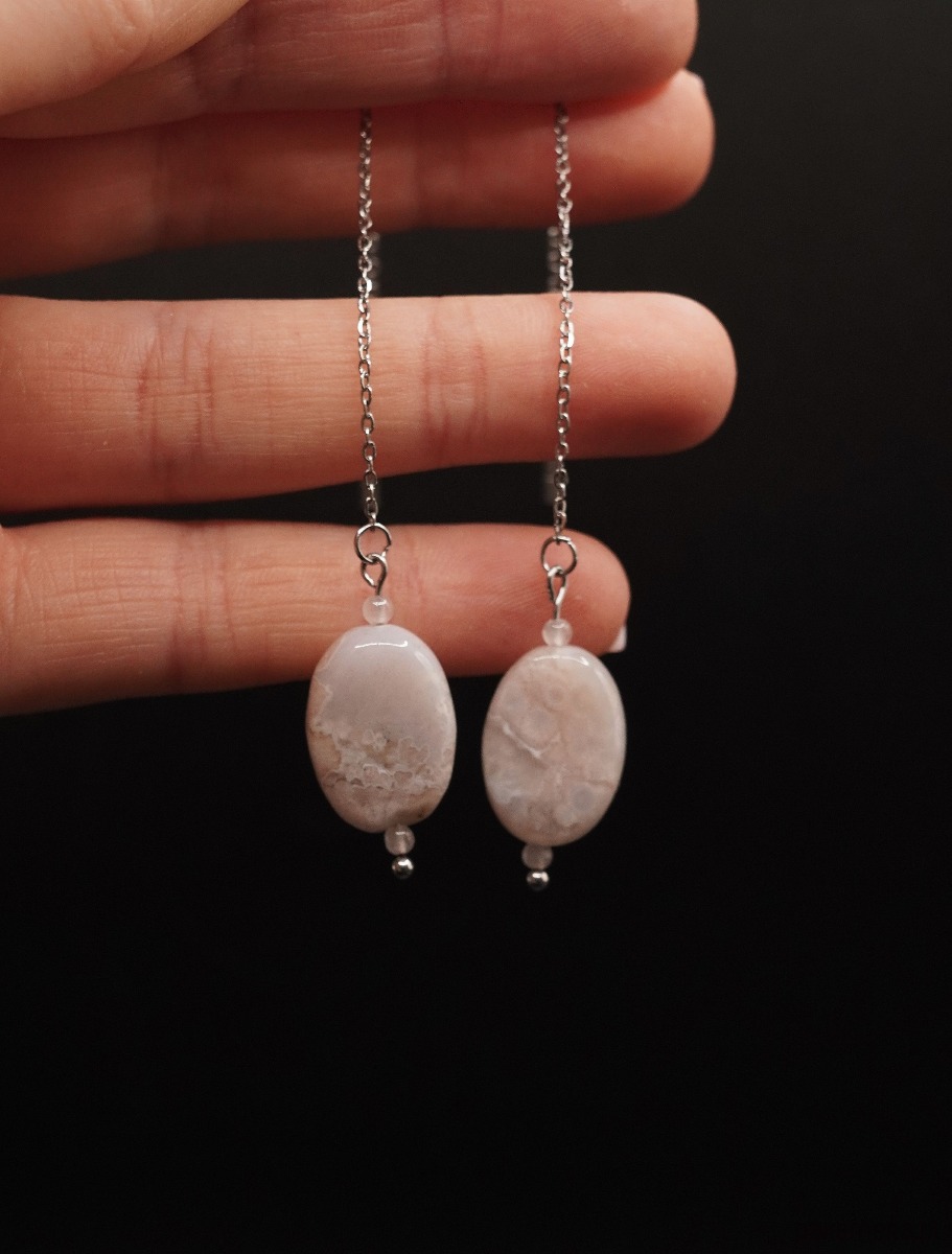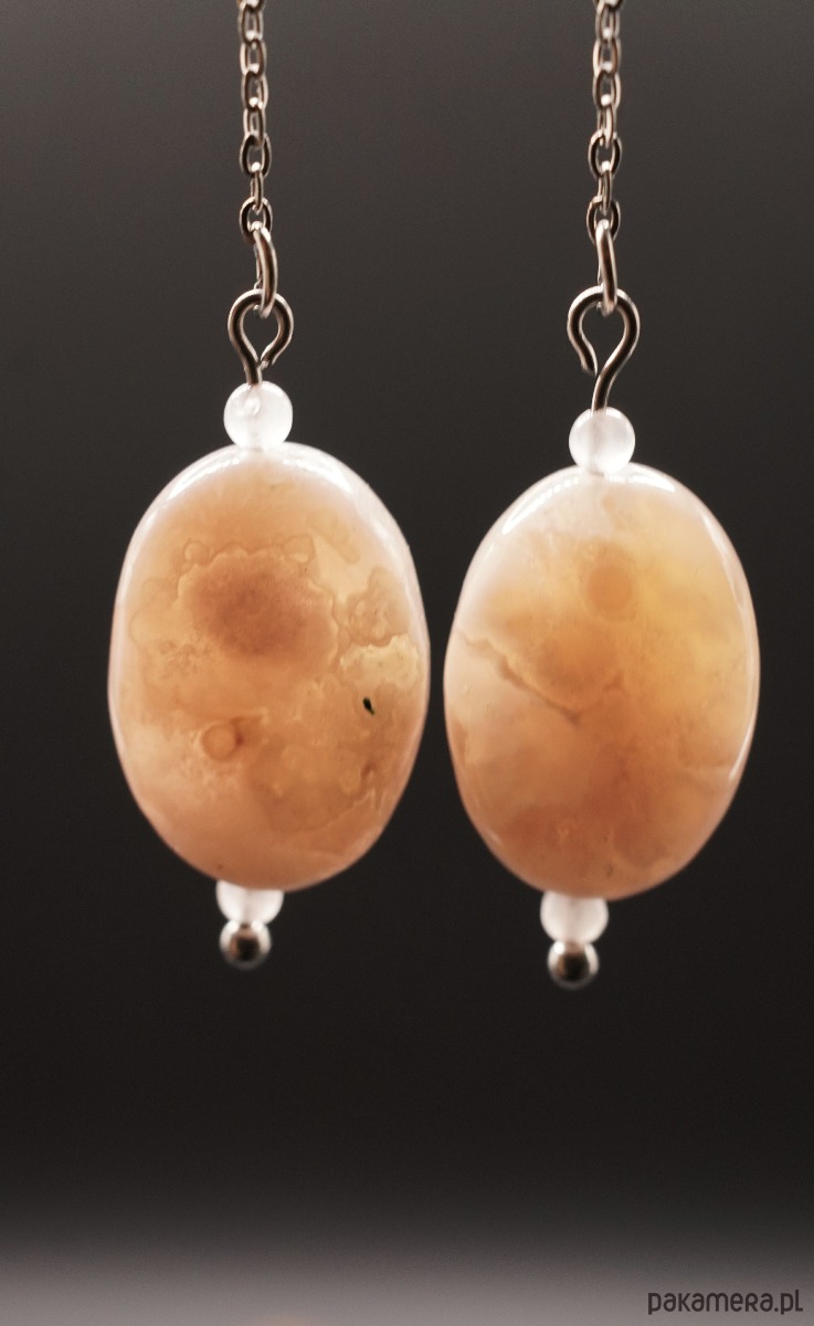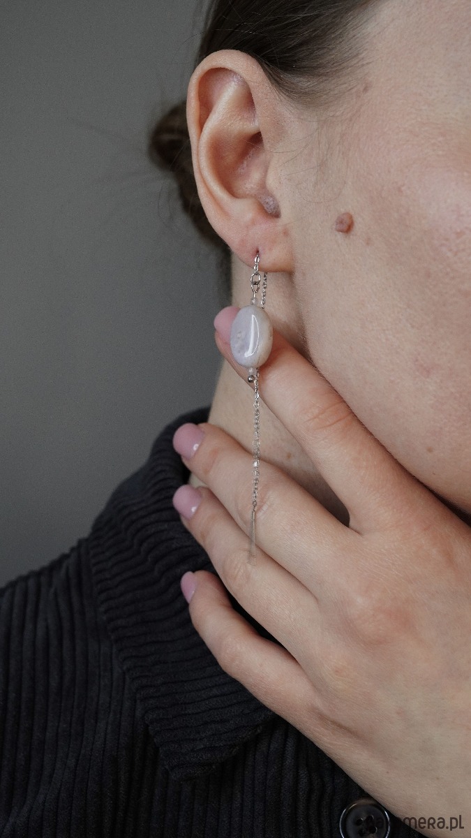 Efekt Świetlny: Dzięki naturalnej przezierności agatu, kolczyki pięknie pracują ze światłem, ukazując skomplikowaną teksturę wnętrza kamienia.