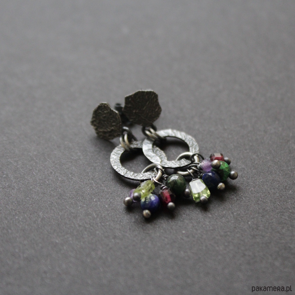 Kolczyki wykonane zostały z oksydowanego srebra próby 925 oraz kolorowych minerałów: