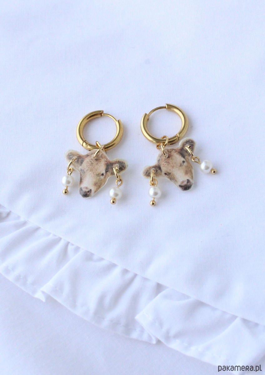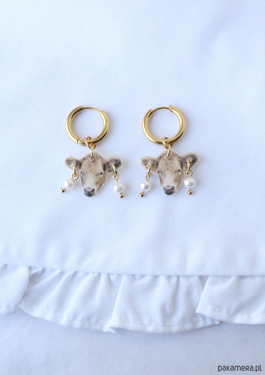 W innej ofercie można znaleźć kolczyki krówki bez perełek w uszach.