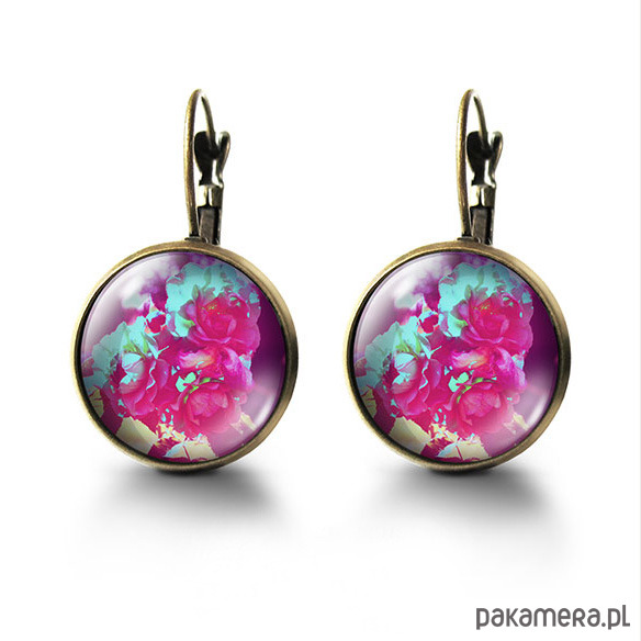 Średnica miniaturki grafiki 14 mm, długość kolczyków ok. 2,5 cm.