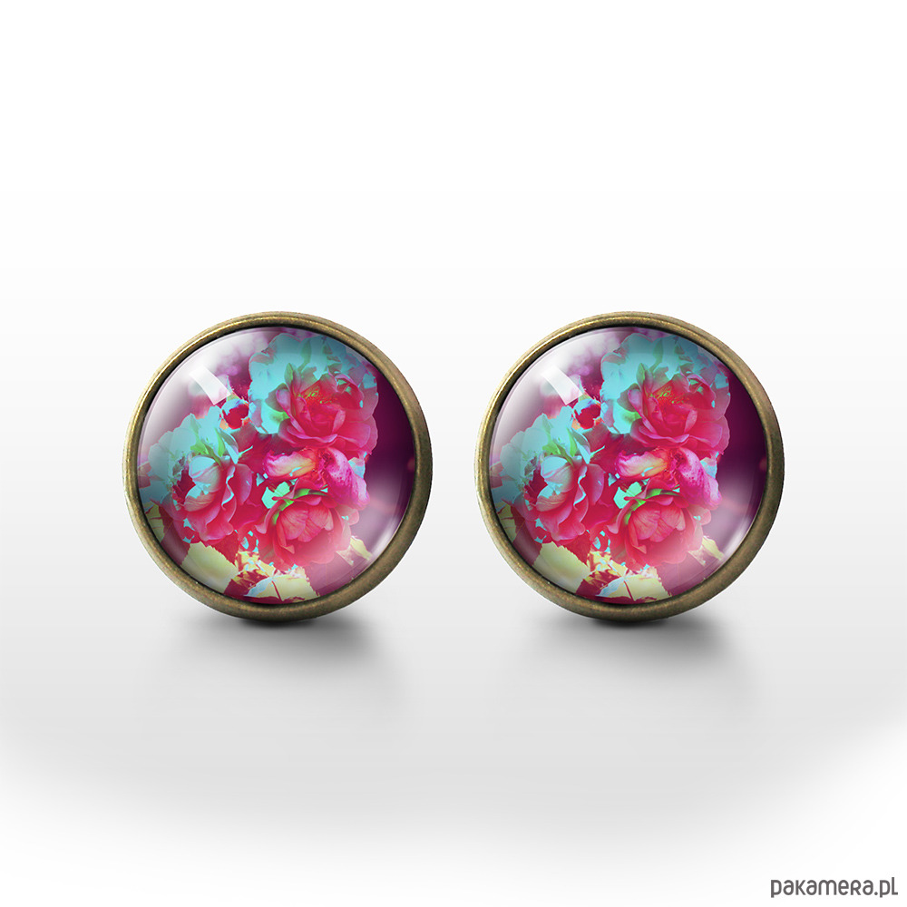 Kolczyki - Amarantowe róże - brąz