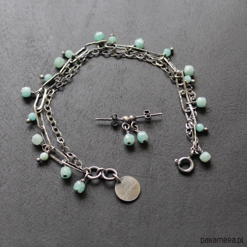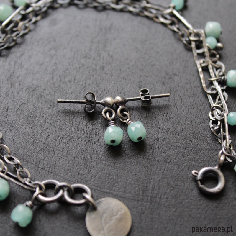 Do kompletu można dokupić naszyjnik lub bransoletkę z amazonitami.