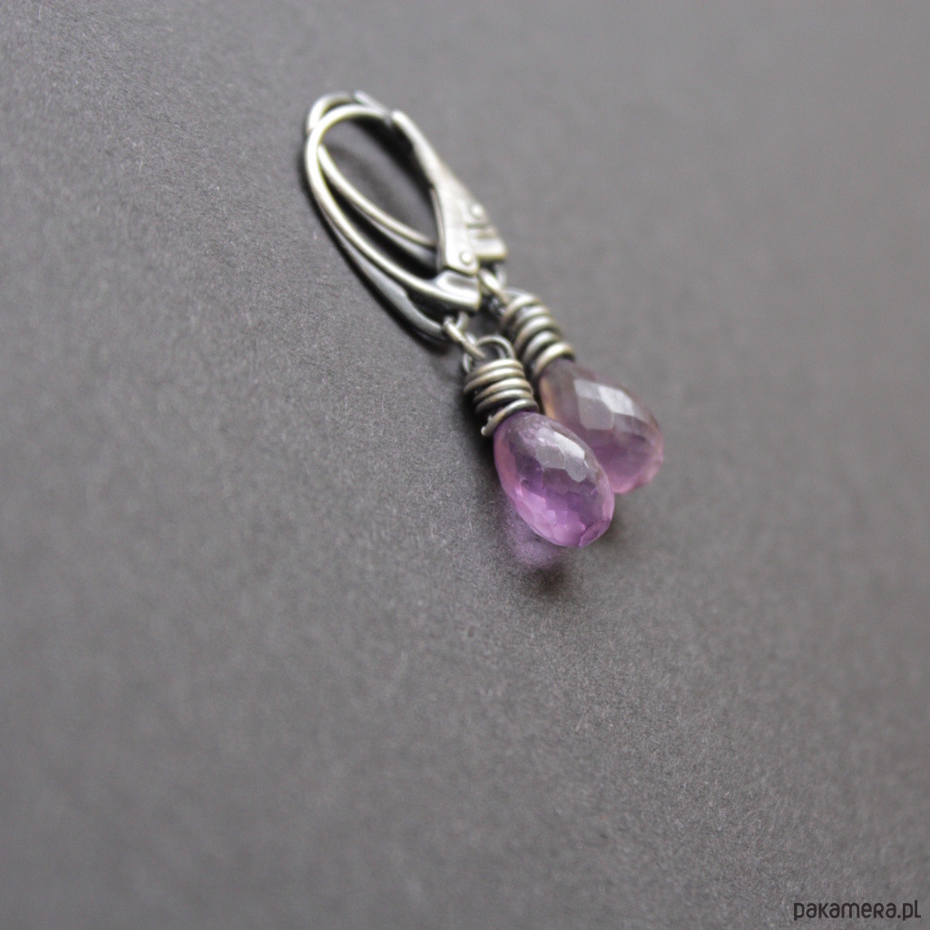 Kolczyki wykonane zostały z oksydowanego srebra próby 925 oraz pięknych fasetowanych kropli ametystów wiekości 1,2 cm.