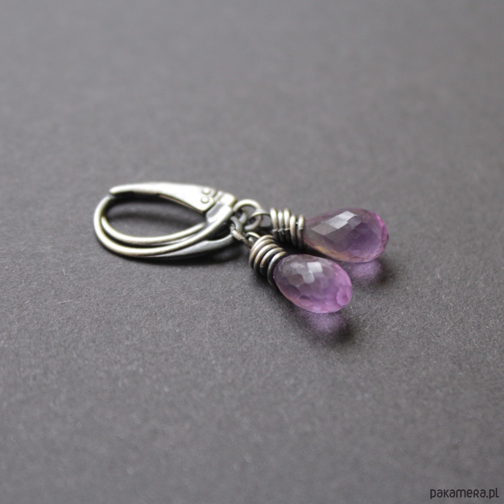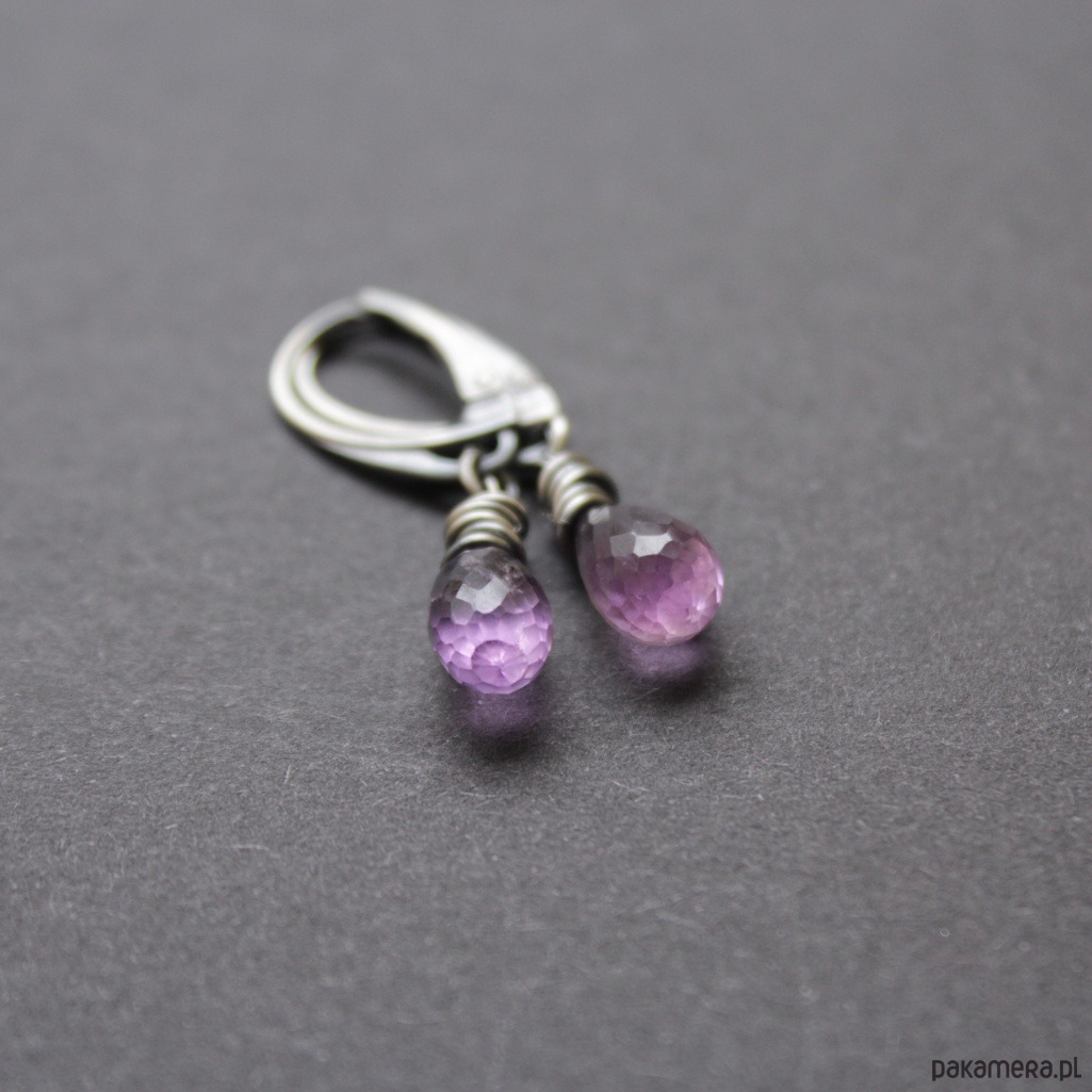 Kolczyki wykonane zostały z oksydowanego srebra próby 925 oraz pięknych fasetowanych kropli ametystów wiekości 1,2 cm.