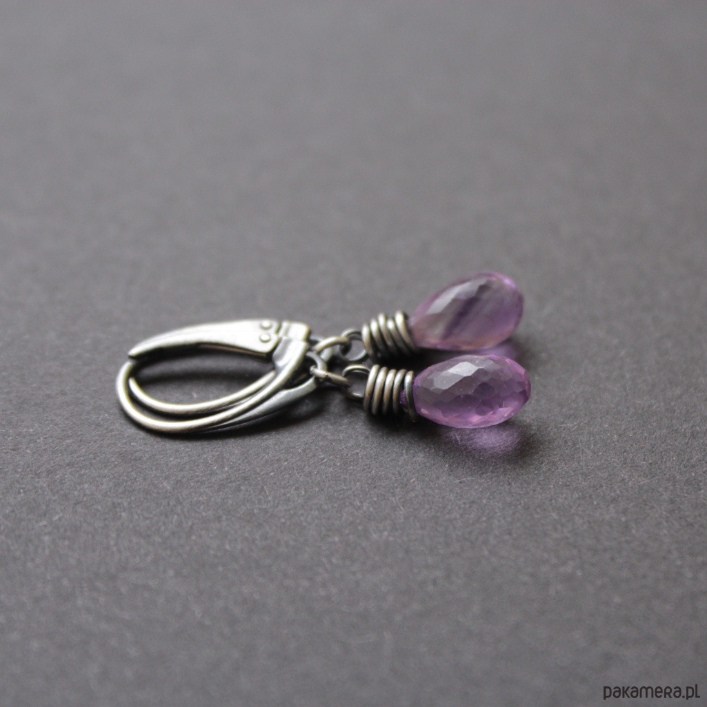 Kolczyki wykonane zostały z oksydowanego srebra próby 925 oraz pięknych fasetowanych kropli ametystów wiekości 1,2 cm.