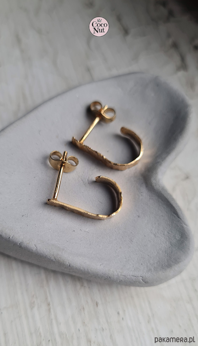 Kolczyki sztyfty wykonane ręcznie z mosiądzu, złocone = pokryte cienką warstwą złota,