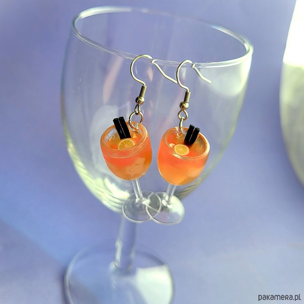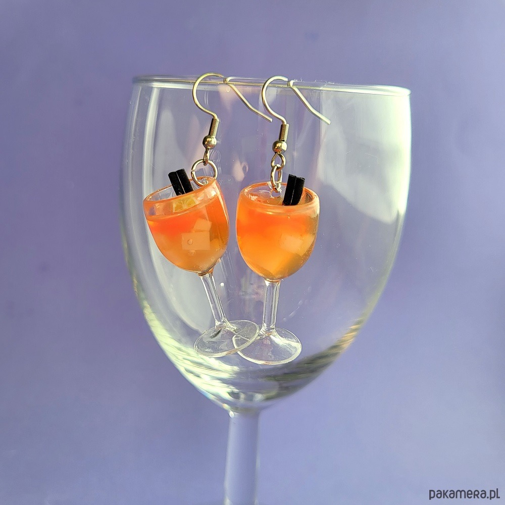 Kolczyki kieliszki ze znanym drinkiem Aperol Spritz. Do wyboru bigle na stali chirurgicznej lub srebrze próby 925.