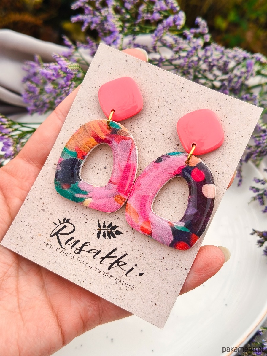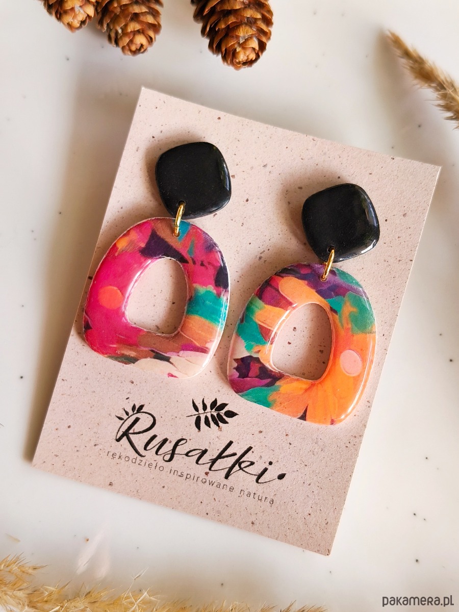 Kolczyki artystyczne, duże lekkie kolczyki z gliny polimerowej, akcesoria boho
