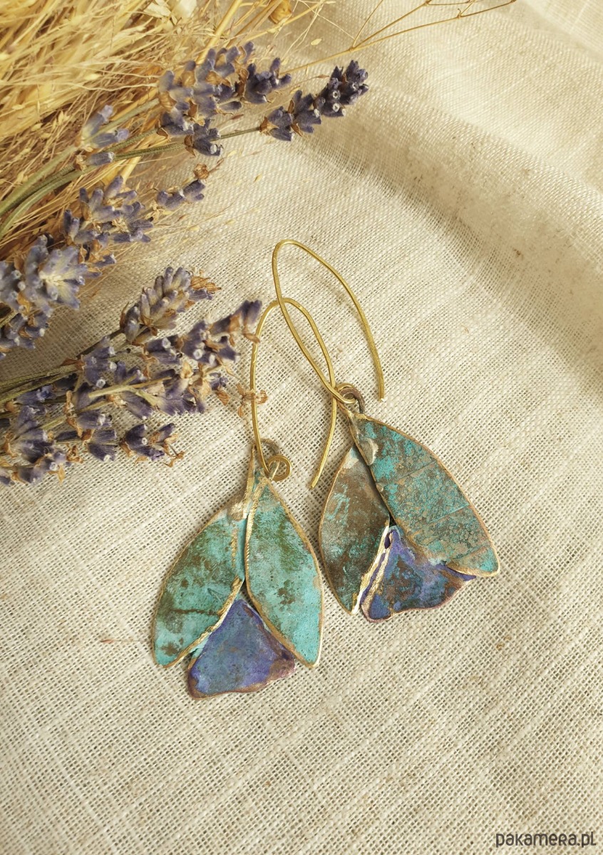 Kolczyki artystyczne patynowane tulipany mosiądz
