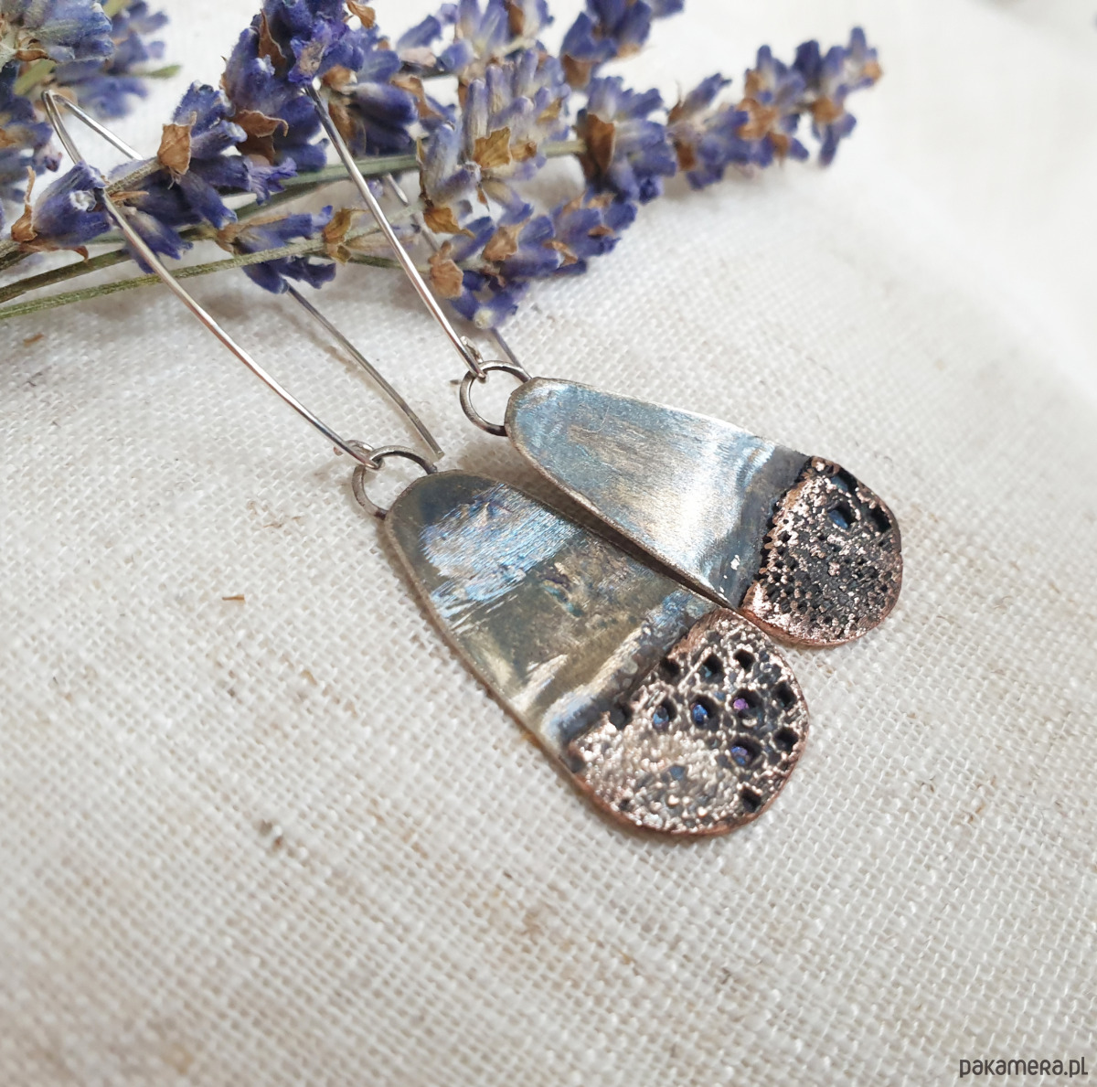 Kolczyki artystyczne srebrne oksydowane koronka