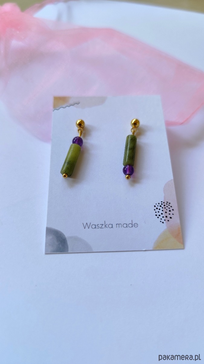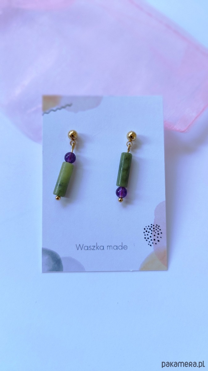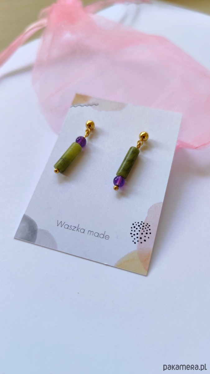 Asymetryczne kolczyki wykonane z akwamarynu oraz ameryst