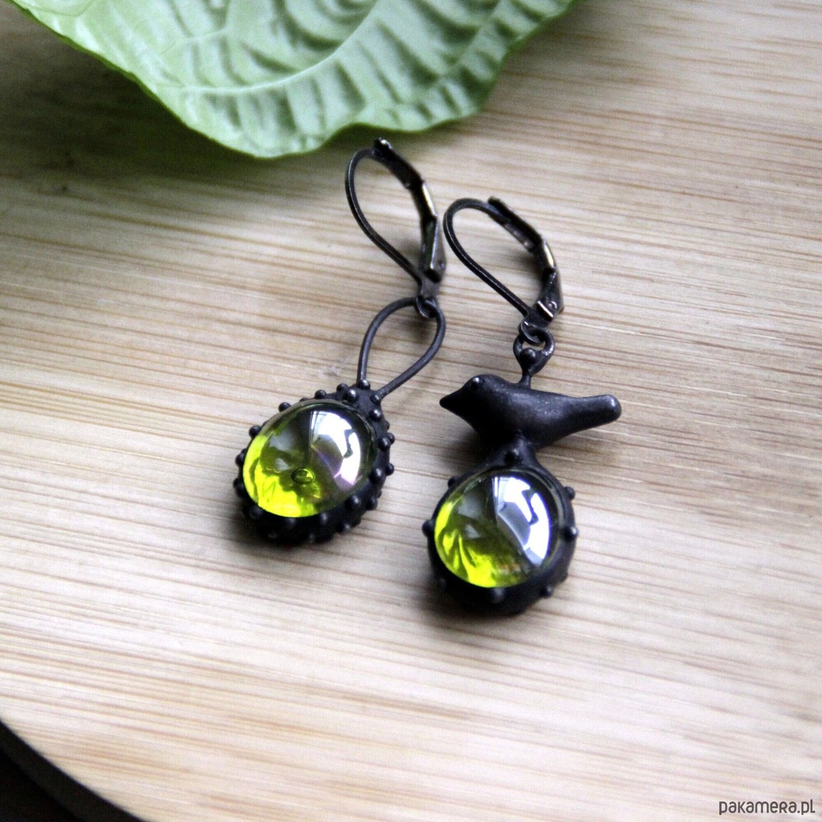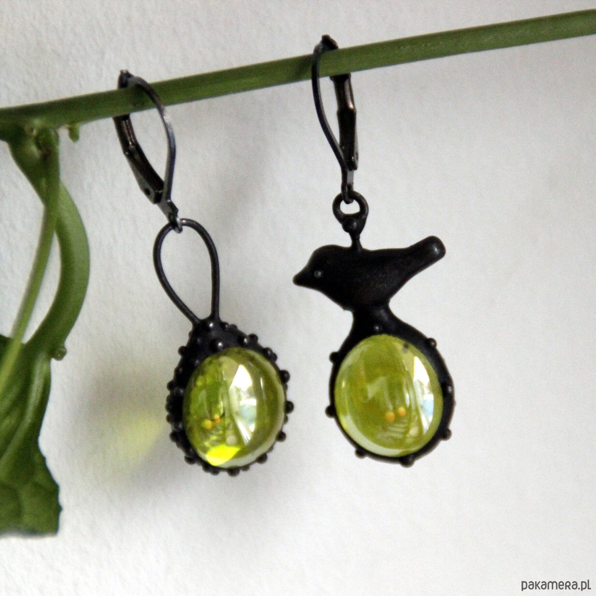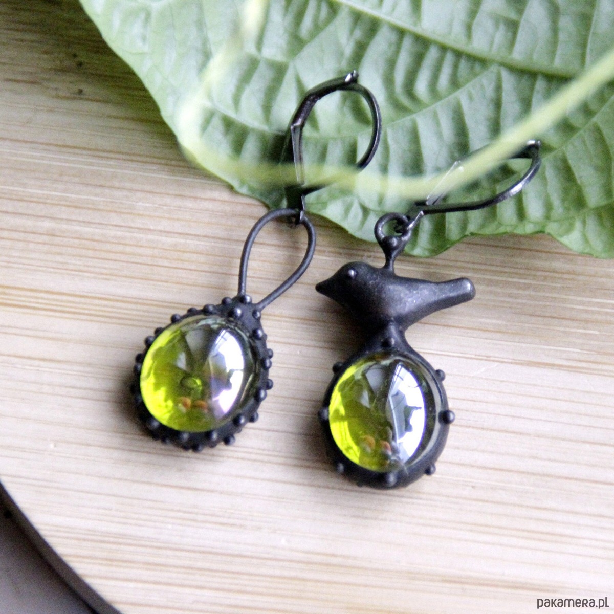 Kolczyki asymetryczne leśne z ptakiem w stylu czarownicy i wróżki.