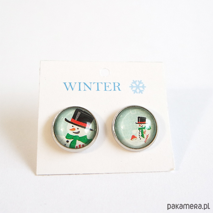 Grafika ukryta w prostych, eterycznych kolczykach, pod osłoną przeźroczystego półokrągłego szkiełka.