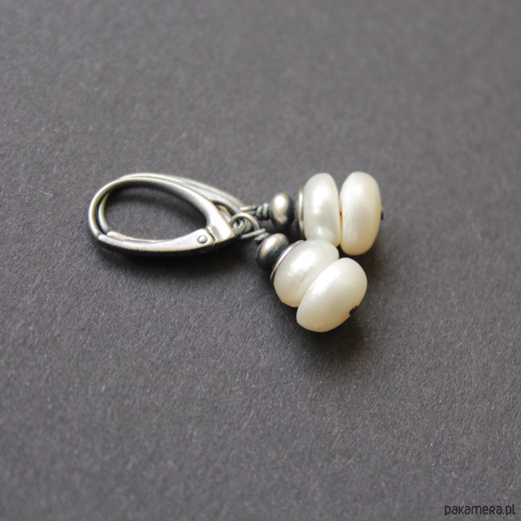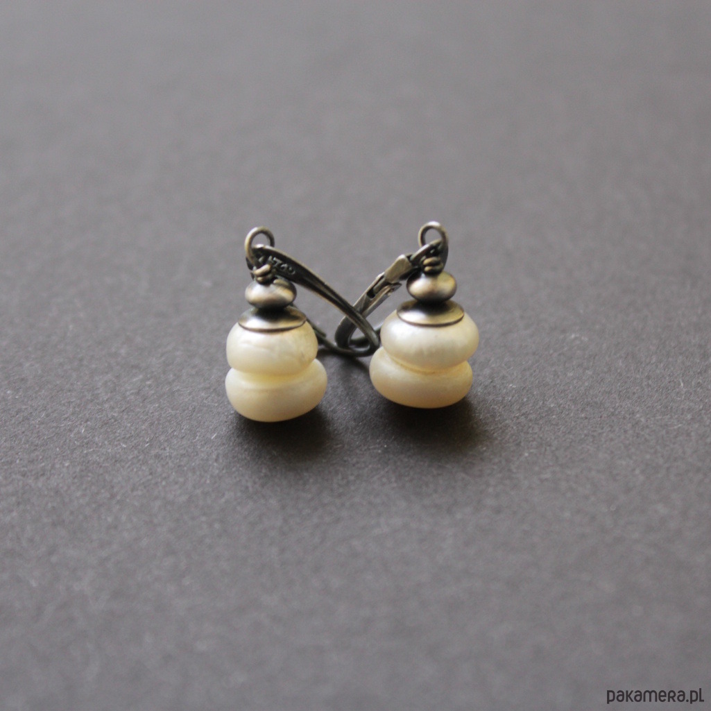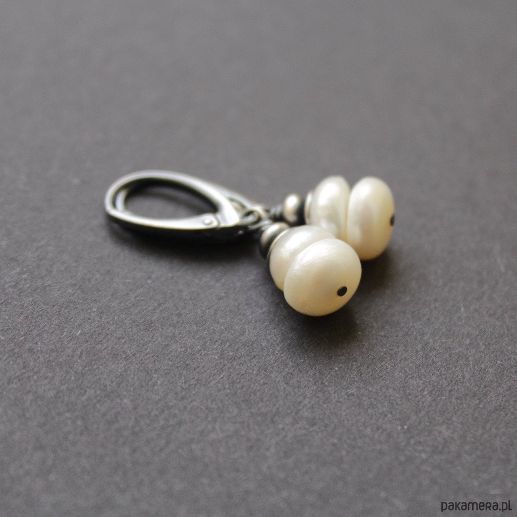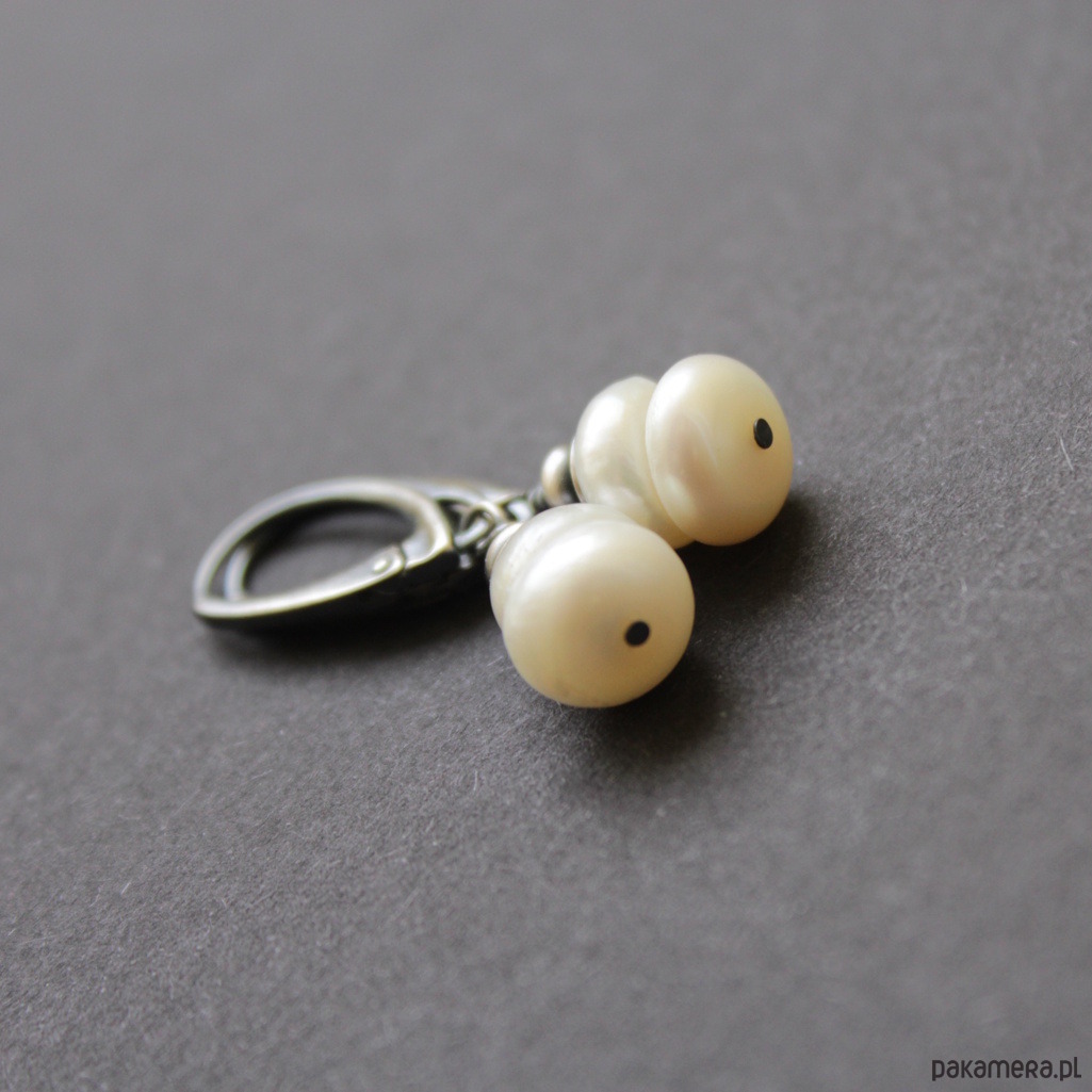 Kolczyki wykonane zostały z oksydowanego srebra próby 925 oraz naturalnych pereł hodowlanych wielkości 0,8 cm.