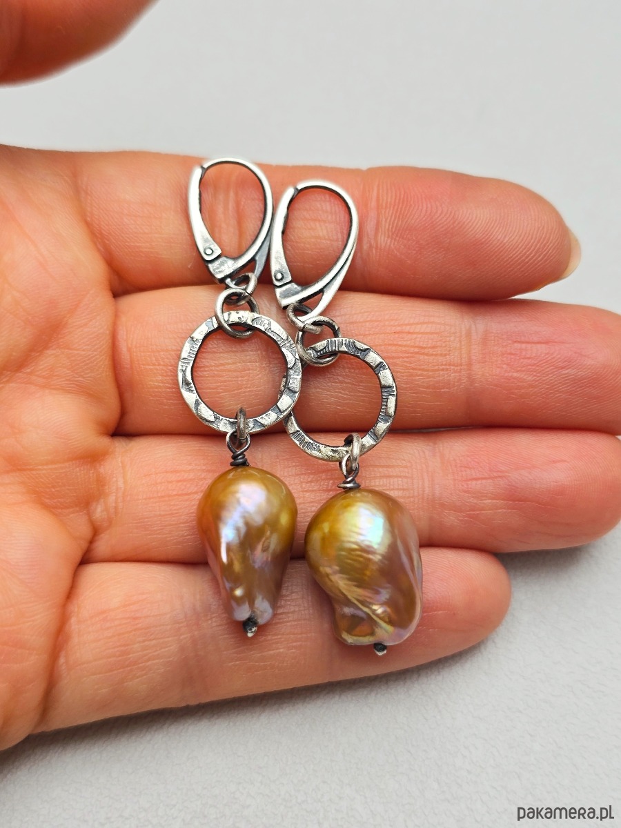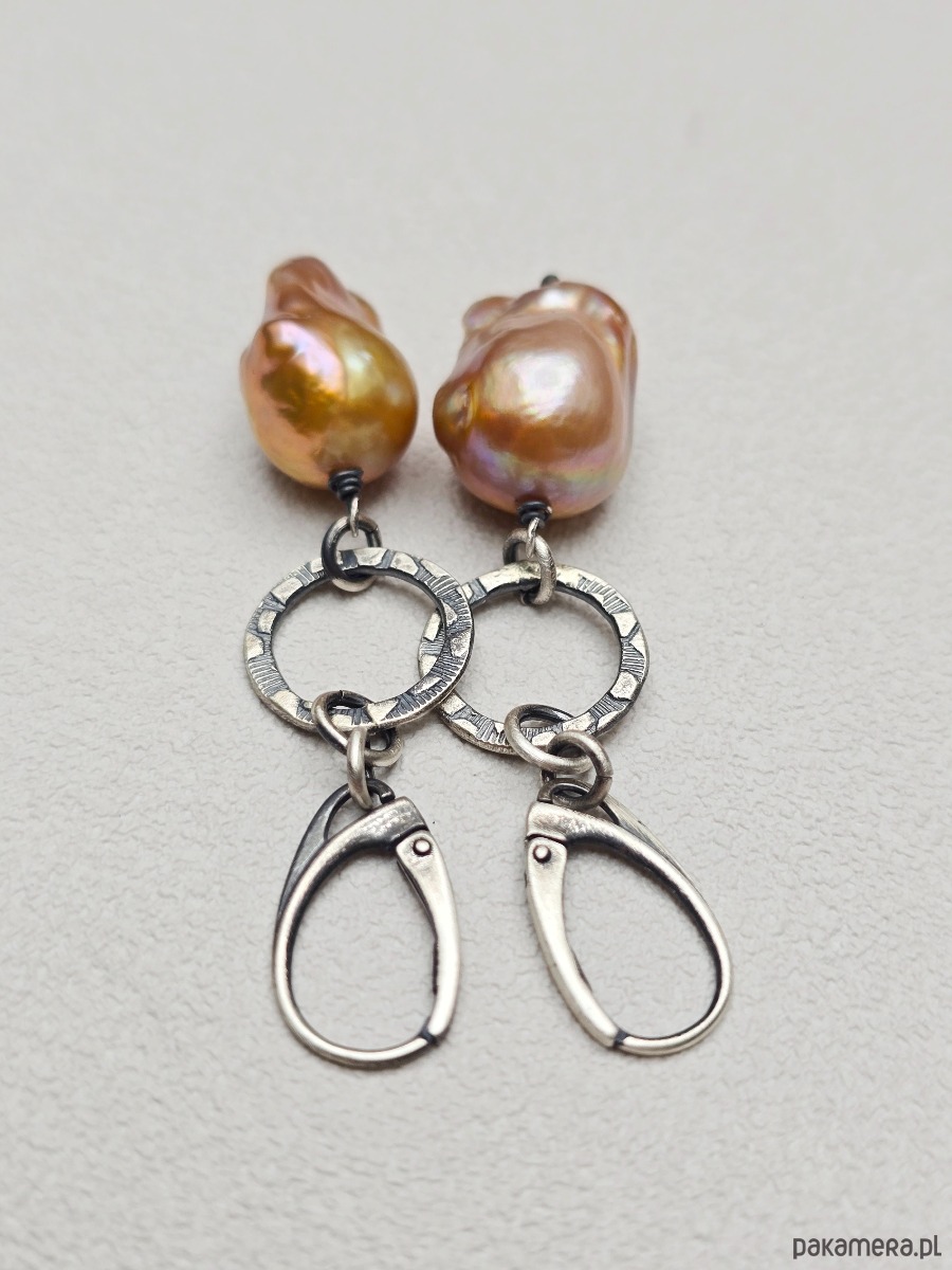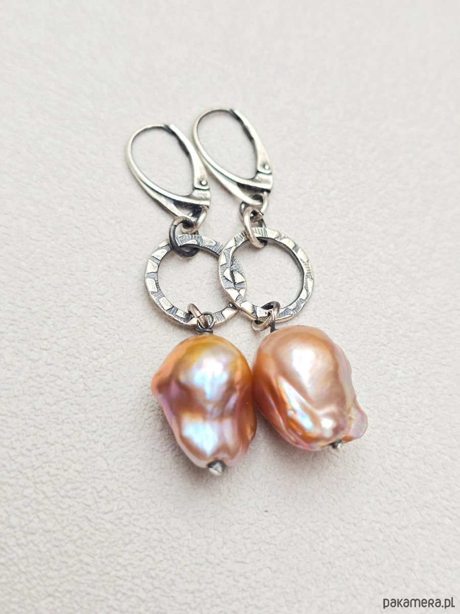 Wyjątkowe kolczyki z przepięknymi barokowymi perłami w beżowo-różowym kolorze.