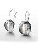 Grafika ukryta w prostych, eterycznych kolczykach, pod osłoną przeźroczystego półokrągłego szkiełka.