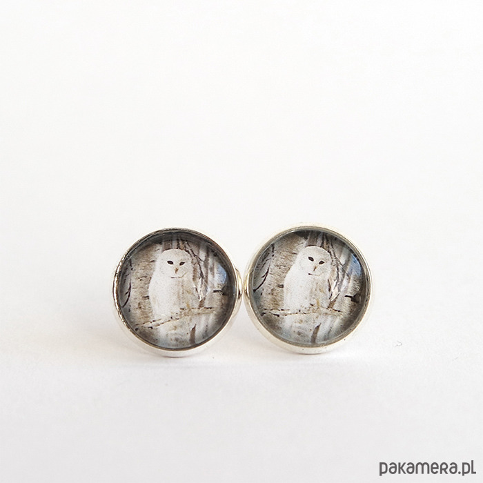 Kolczyki - Biała sowa - wkrętki, sztyfty, małe