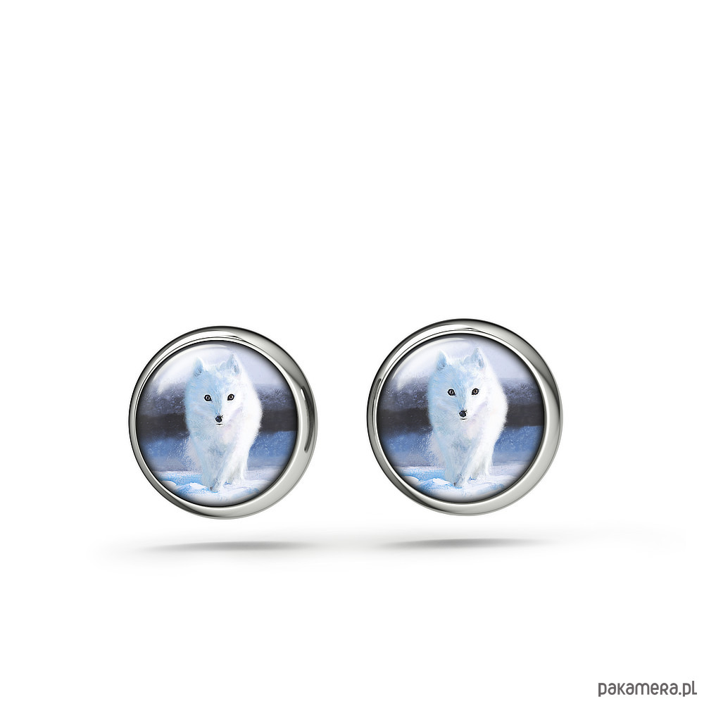 Grafika ukryta w delikatnych kolczykach, pod osłoną przeźroczystego półokrągłego szkiełka.