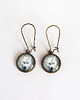 Grafika ukryta w prostych, eterycznych kolczykach, pod osłoną przeźroczystego półokrągłego szkiełka.