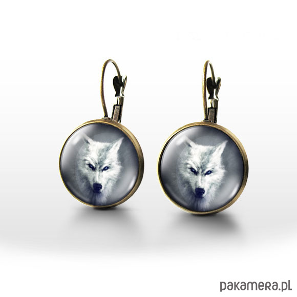 Kolczyki - Biały wilk - brąz