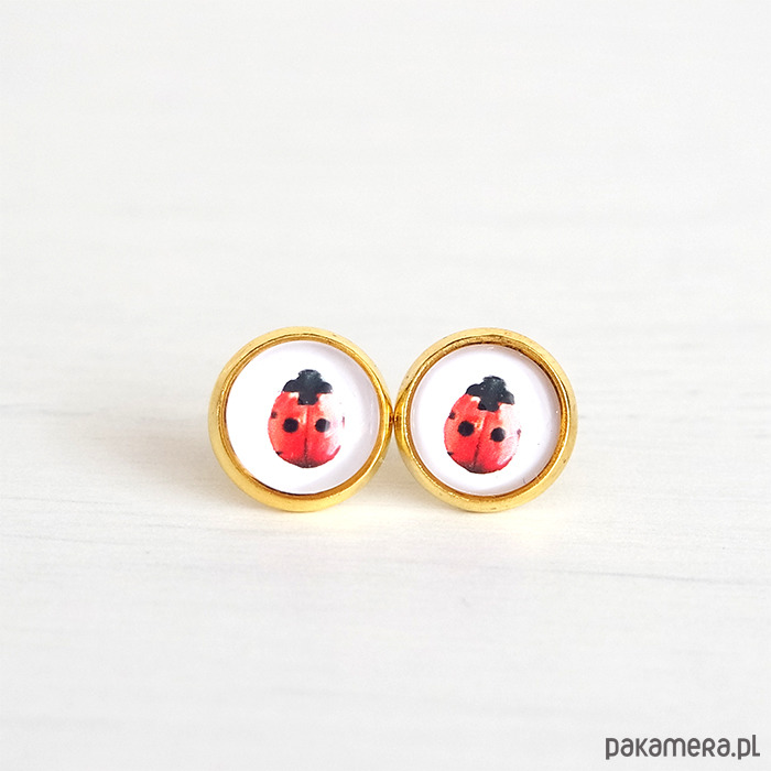 Kolczyki - Biedronki - mini, kolor złoty