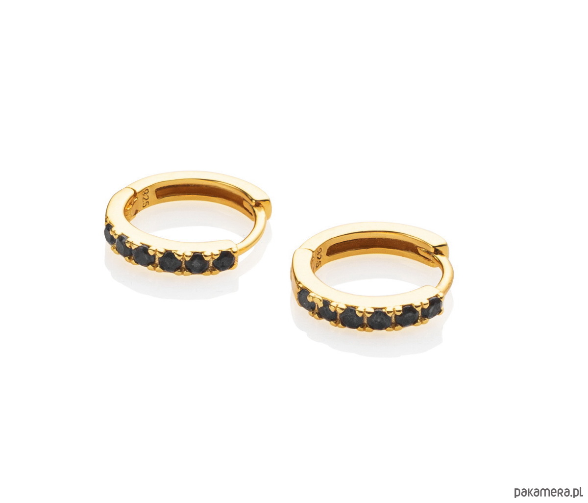 Kolczyki "Black Belle" małe koła z cyrkoniami 9mm - srebro 925 pozłacane