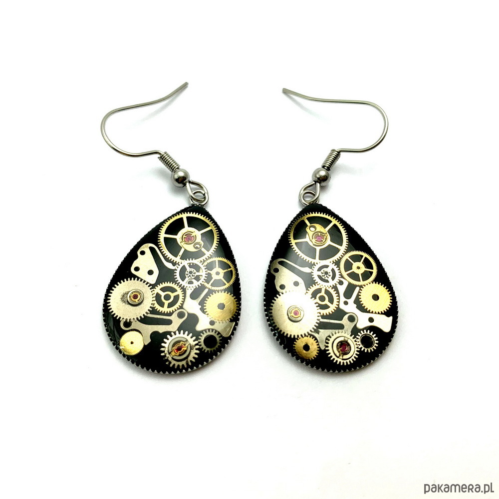 Przepiękne kolczyki, wykonane ręcznie z elementów starych zegarków zatopionych w żywicy. Każda para jest unikalna i niepowtarzalna.
