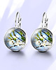 Grafika ukryta w prostych, eterycznych kolczykach, pod osłoną przeźroczystego półokrągłego szkiełka.