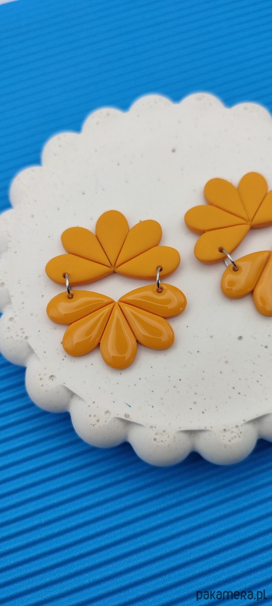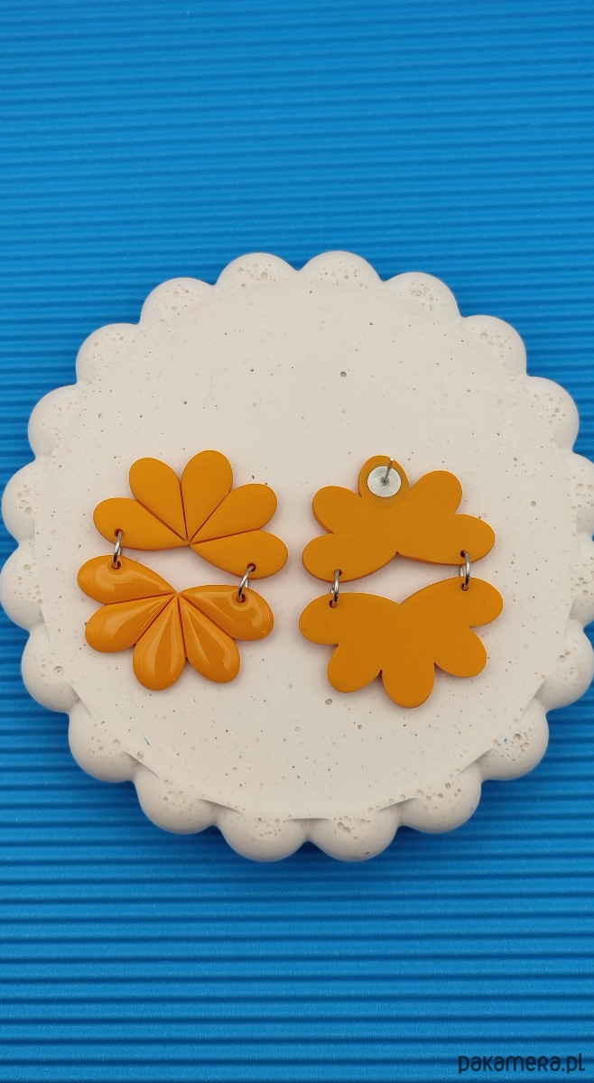 Kolczyki BLOOM mają piękną, abstrakcyjną formę i intensywne kolory. Jedna strona matowa, druga połówka kwiatka pokryta żywicą.