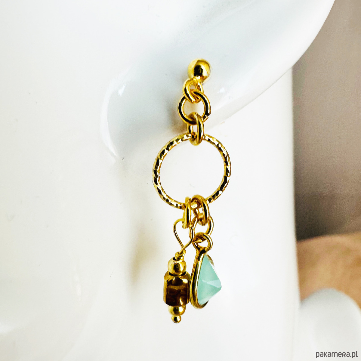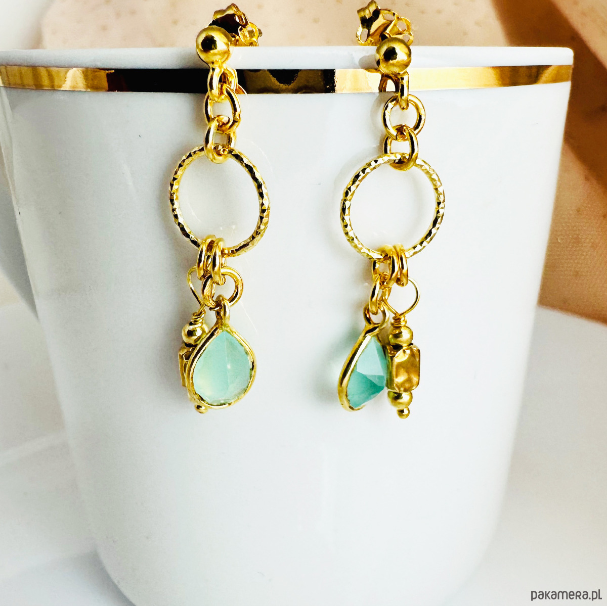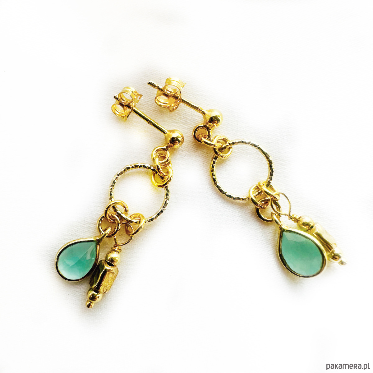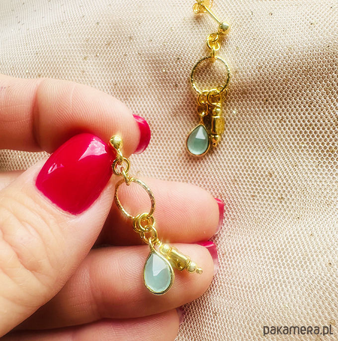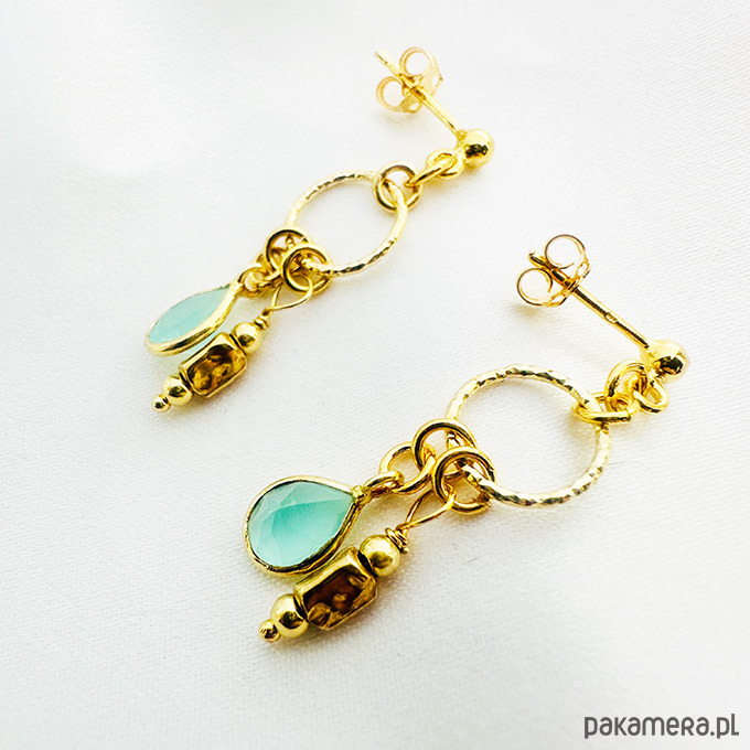 Kolczyki boho, akwamaryn złoto