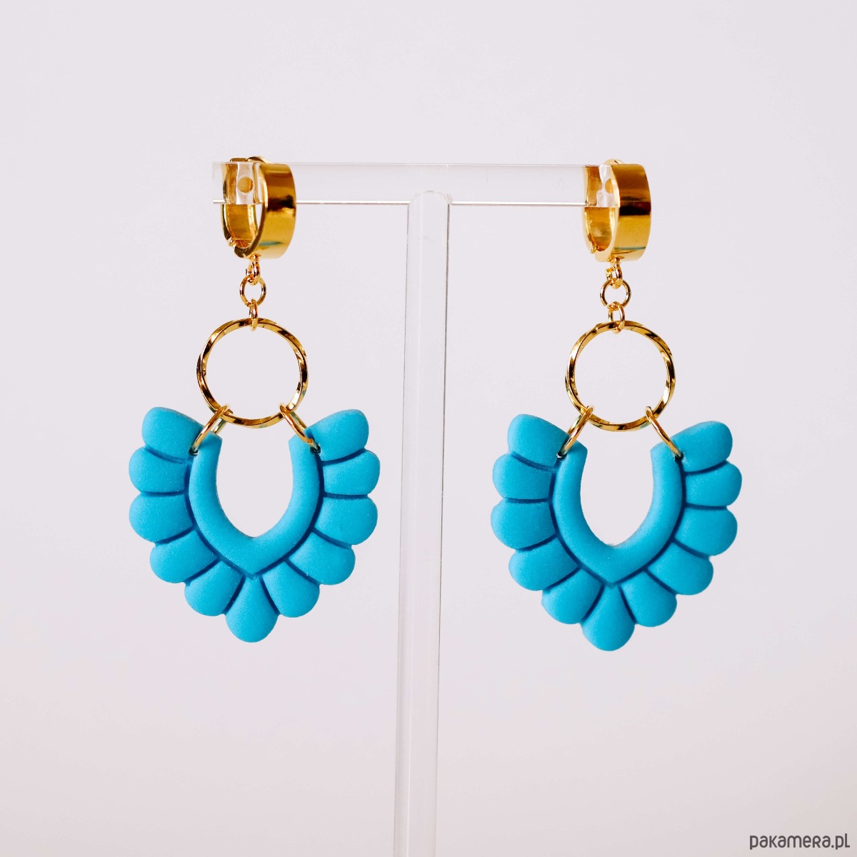 Długie, wiszące kolczyki w stylu boho z kwiatem lotosu. Przepiękny, przykuwający oko, odcień niebieskiego. Kolczyki, mimo swych rozmiarów, są ultralekkie i komfortowe w noszeniu.
