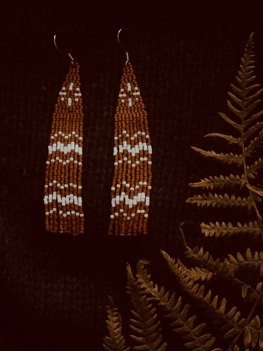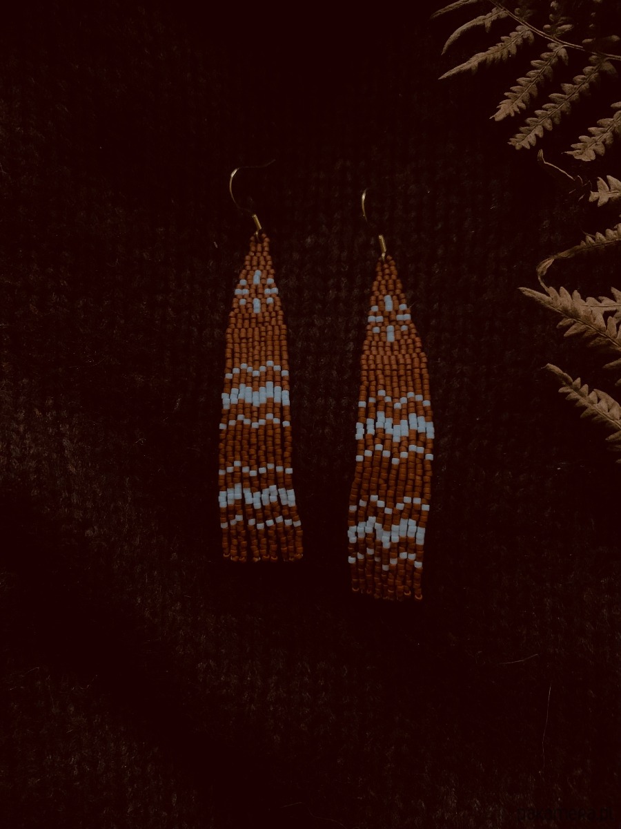 Koraliki w kolorze ciepłego jasnego brązu i śnieżnej bieli. Kolor w rzeczywistości może się różnić w zależności od ustawień monitora.